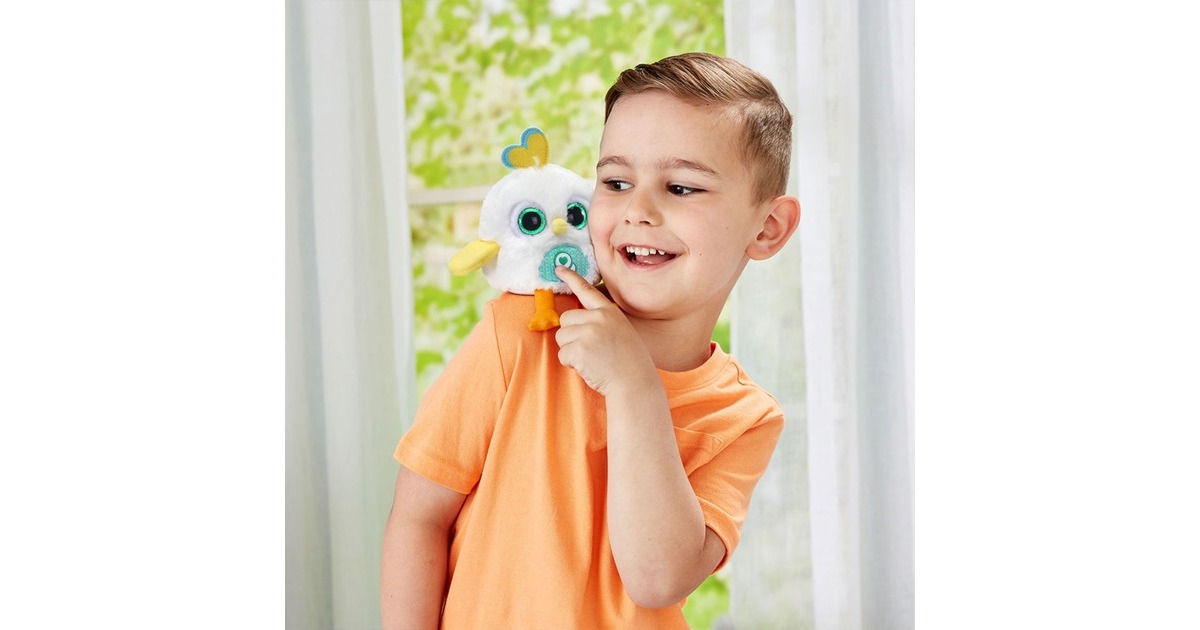 Der niedliche Lolibirds - Oscar, ist ein einzigartiges Spielzeug, das auf die Schulter gesetzt werden kann und Gesagtes wiederholt. Mit seinem Magnet-Kissen kann Oscar sich bequem auf der Schulter niederlassen und überallhin mitgenommen werden. Oscar verfügt über einen tollen Stimmverzerreffekt, der Gesagtes mit lustigen Effekten wiedergibt. Das sorgt für jede Menge Spaß und Gelächter! Ein Bewegungssensor erkennt, wenn Oscar „fliegt“, geschüttelt oder auf den Kopf gestellt wird und löst dann eine lustige Reaktion aus. Seine leuchtenden Augen spiegeln dabei Oscars Gefühle wider. Darüber hinaus bietet Oscar eine leuchtende Aufnahme-Taste am Bauch, mit der man bis zu 10 Sekunden lang seine Stimme, Gesang oder Geräusche aufnehmen kann. Die Musik-Taste am Flügel löst zudem tolle Melodien aus und sorgt für musikalische Unterhaltung.Art.-Nr.: 100037708