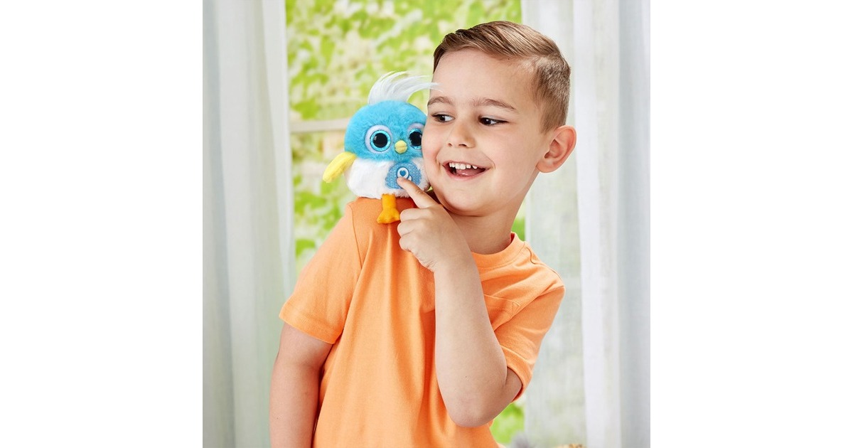 Der niedliche Lolibirds - Pauly, ist ein einzigartiges Spielzeug, das auf die Schulter gesetzt werden kann und Gesagtes wiederholt. Mit seinem Magnet-Kissen kann Pauly sich bequem auf der Schulter niederlassen und überallhin mitgenommen werden. Pauly verfügt über einen tollen Stimmverzerreffekt, der Gesagtes mit lustigen Effekten wiedergibt. Das sorgt für jede Menge Spaß und Gelächter! Ein Bewegungssensor erkennt, wenn Pauly „fliegt“, geschüttelt oder auf den Kopf gestellt wird und löst dann eine lustige Reaktion aus. Seine leuchtenden Augen spiegeln dabei Paulys Gefühle wider. Darüber hinaus bietet Pauly eine leuchtende Aufnahme-Taste am Bauch, mit der man bis zu 10 Sekunden lang seine Stimme, Gesang oder Geräusche aufnehmen kann. Die Musik-Taste am Flügel löst zudem tolle Melodien aus und sorgt für musikalische Unterhaltung.Art.-Nr.: 100037700