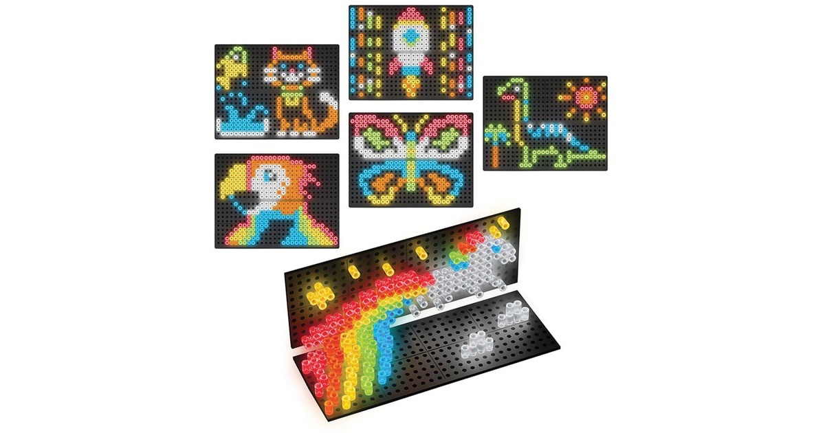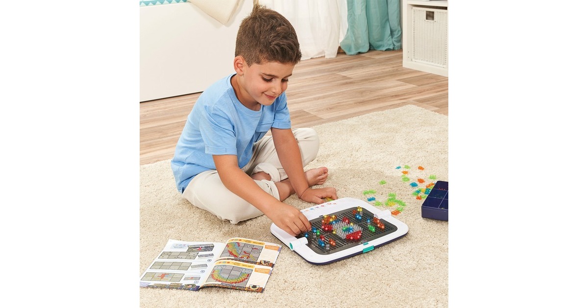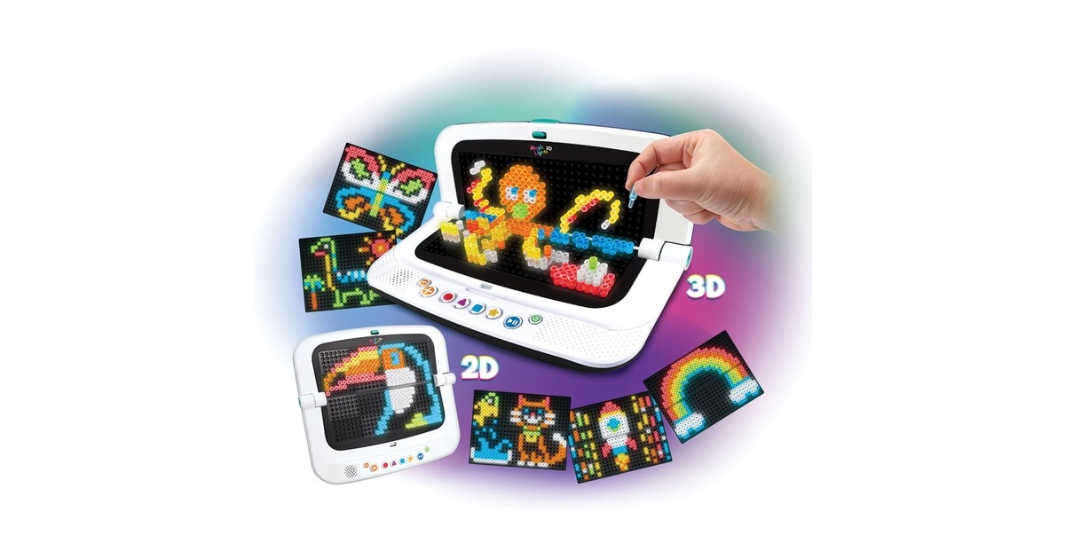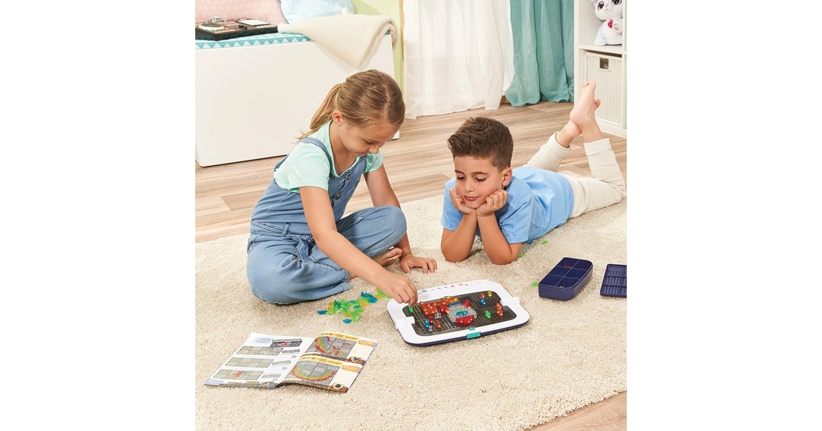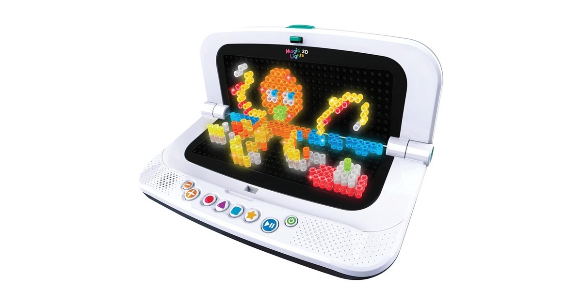 Mit Magic Lights 3D kommt ein leuchtender Steckspiel-Spaß. Die aufklappbare Spielekonsole hat 8 Tasten, 16 LEDs, eine Aufbewahrungsbox, ein Booklet und insgesamt 180 Stecker in 6 verschiedenen Farben. Lichter, Geräusche und Animationen runden das Spielerlebnis ab. Anhand des beigelegten Booklets können Modelle ausgewählt und nach Anweisungen erstellt werden. Das Booklet enthält einen Quick Start Guide, Anleitungen sowie die Anleitung zum freien Spiel. Gespielt werden kann in zwei Spieleinstellungen (2D und 3D) mit je 2 Schwierigkeitsstufen (leicht und fortgeschritten). Anleitungen für 8 2D-Modelle und 8 3D-Modelle zum Nachbilden sind mit dabei, wobei jedes Modell einen individuellen Lichtcode hat und damit zum Leuchten gebracht werden kann. Außerdem können eigene Kreationen geschaffen und mit 34 verschiedenen Leuchteffekten zum Leuchten gebracht werden.