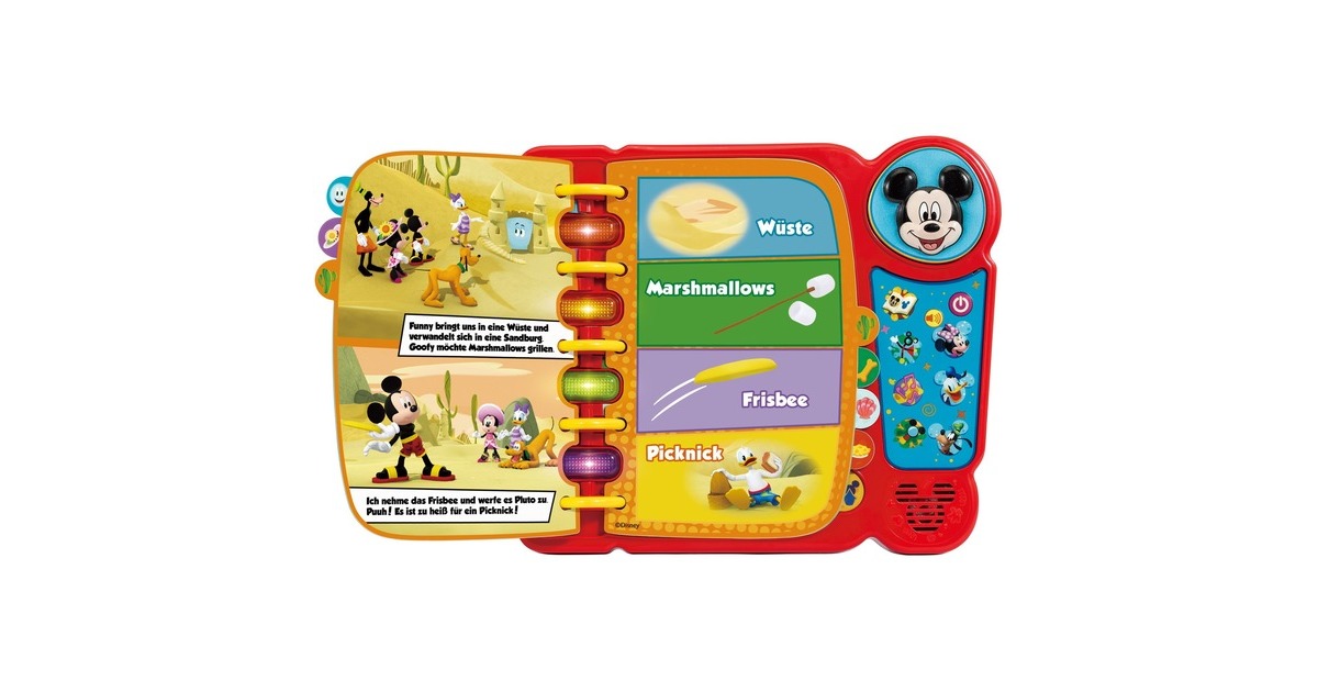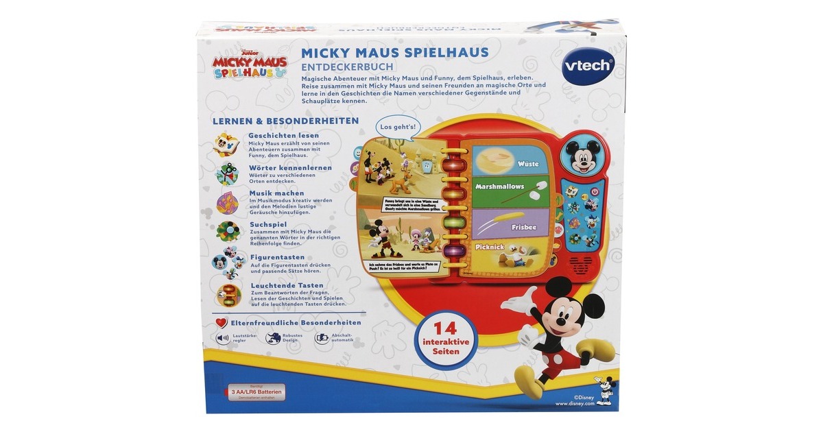 4 Spieleinstellungen: Geschichten lesen, Entdecken, Musik und Suchen. Mit der Originalstimme von Micky Maus. |