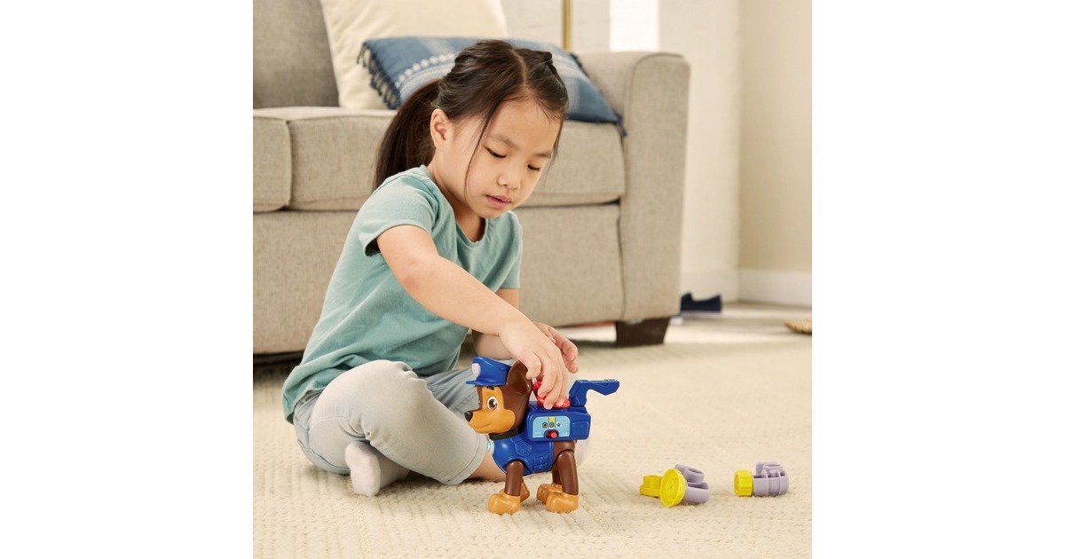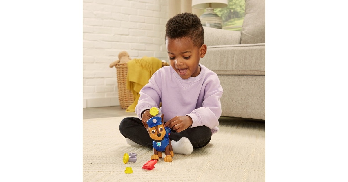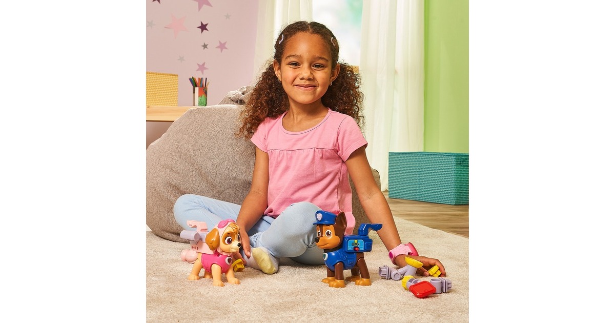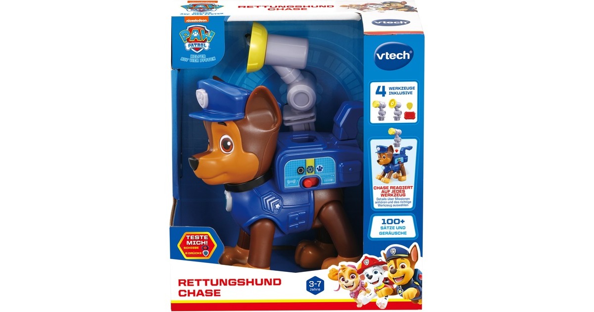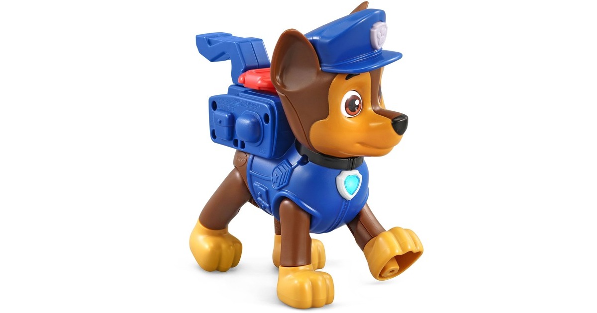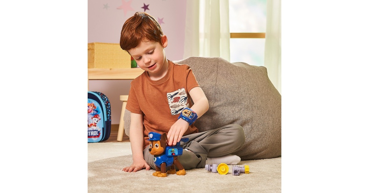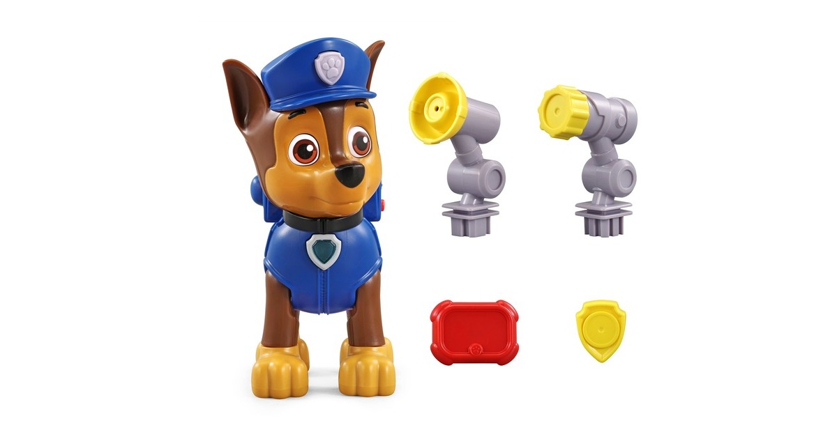 Mit ihrem Pup Pack ist diese Spielfigur von Chase, dem Helden aus der Paw Patrol, auf jedes Abenteuer vorbereitet! Mit den 4 enthaltenen Werkzeugen (Megafon, Netzwerfer, Pup-Pad und Kompass) kann er in jeder Situation helfen. Chase erkennt, welches Werkzeug in das Pup Pack gelegt wurde, und erklärt, wie dieses funktioniert. Die Figur hat zwei Spieleinstellungen: Den Entdeckermodus und den Quizmodus. Beim Drücken der Dienstmarke auf Chase Kopf oder der Hundemarke um seinen Hals spricht Chase lustige Sätze. Im Quizmodus kann man sein Wissen über die Werkzeuge spielerisch testen.Art.-Nr.: 100004711