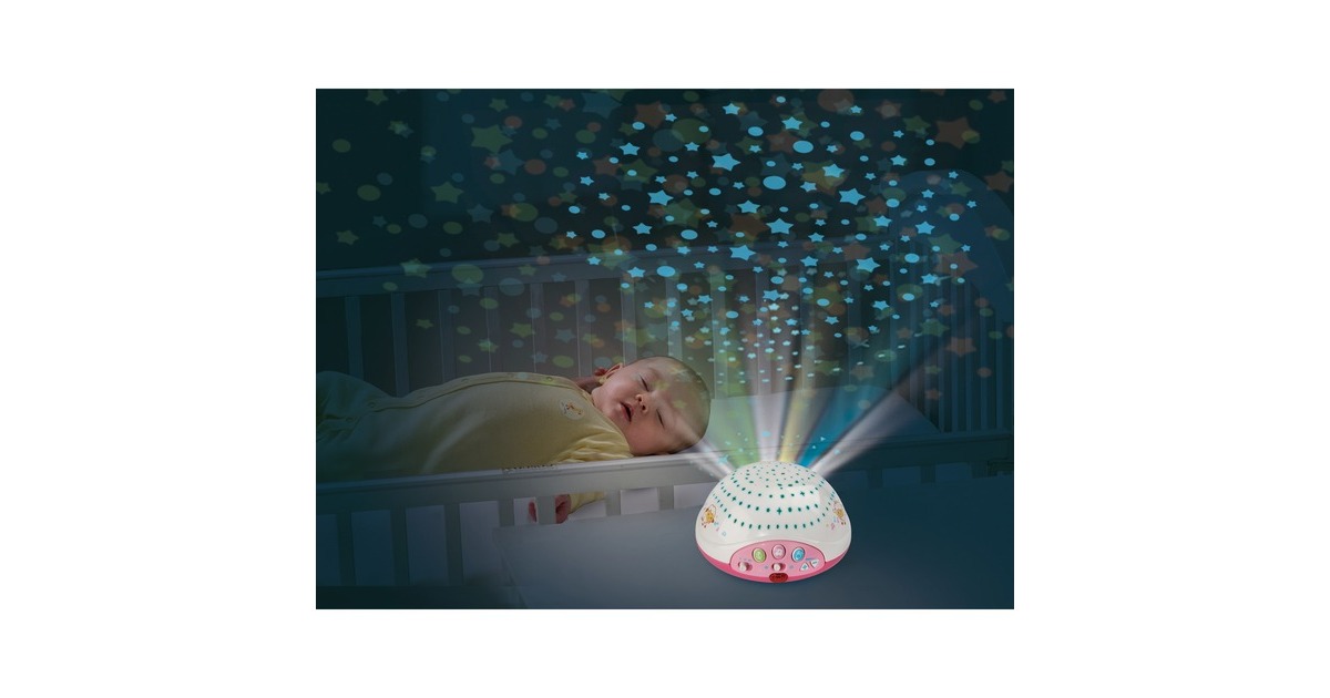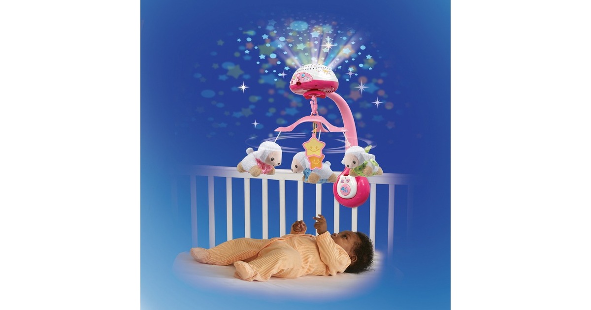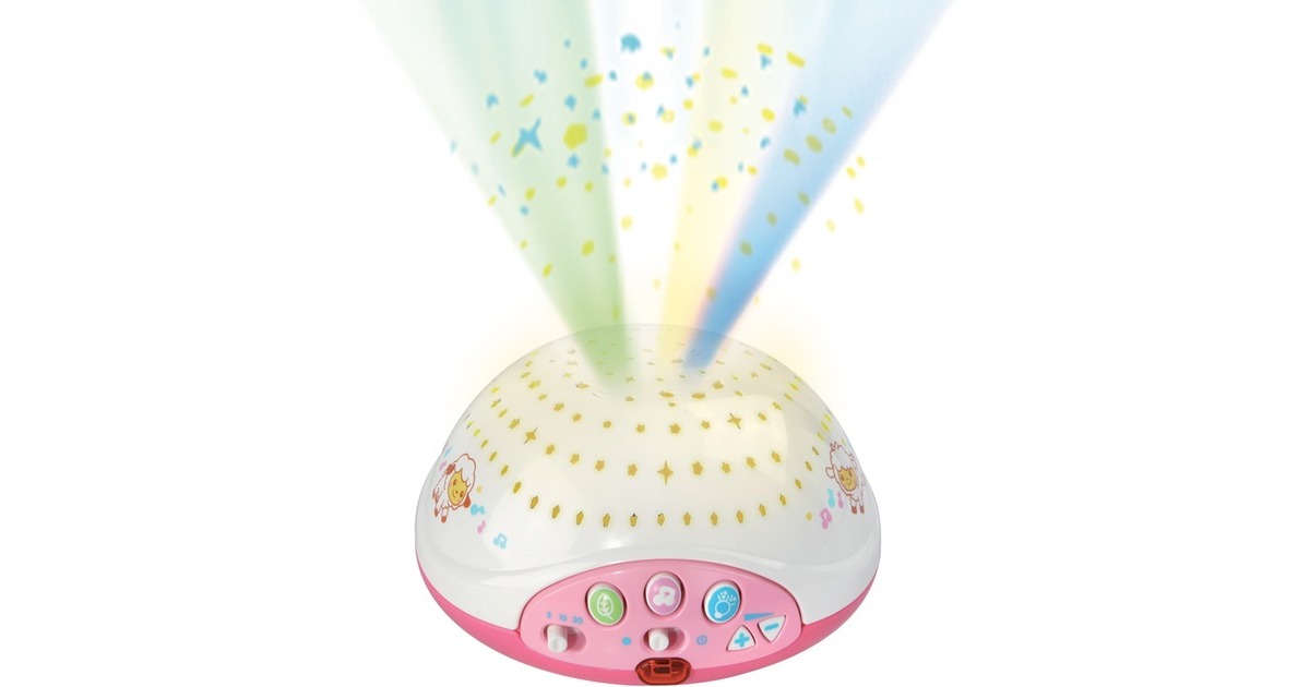 Für besonders süße Träume sorgt das Schäfchen-Mobile! Drei süße, weiche Plüsch-Schäfchen drehen sich im Kreis. Dazu werden Sternenlichter mit bunten Lichteffekten an die Decke projiziert. Vier Schlaflieder und beruhigende Naturgeräusche begleiten Babies sanft in den Schlaf. Der Geräuschsensor lässt die Melodien wieder erklingen, sobald das Baby weint. Durch die Zeitschaltuhr, die auf 15, 30 oder 45 Minuten eingestellt werden kann, und den zwei Lautstärkereglern lässt sich das Schäfchen-Moblie den individuellen Bedürfnissen der Kleinen anpassen. Die Fernbedienung sorgt für Bedienkomfort auch aus der Distanz.