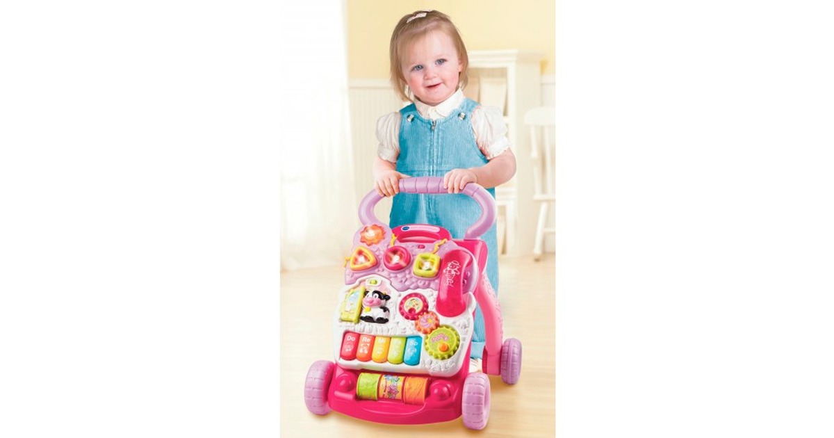 Der Spiel- und Laufwagen beinhaltet viele verschiedene Tasten und Funktionen, wodurch Kinder Farben, Formen, Tiere und Musik spielerisch kennenlernen. Der Laufwagen fördert die motorische Entwicklung des Kindes. Der Spiel- und Laufwagen spielt ein gesungenes Kinderlied und 11 Kindermelodien ab, welche die Sprachentwicklung des Kindes fördern. Durch die bunten Klaviertasten, den Telefonhörer, die Rollen und die weiteren Tasten zum Drücken wird die Entwicklung der Feinmotorik und die Hand-Augen-Koordination gefördert.Art.-Nr.: 1188925