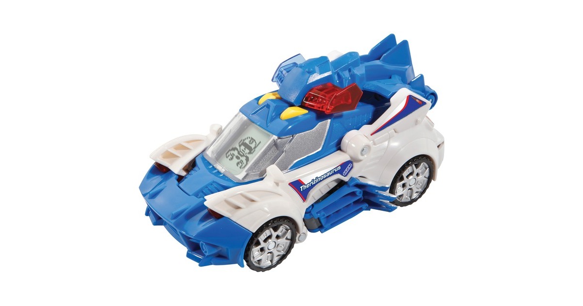 Dieses tolle Dinosaurier-Spielzeug kann beides sein: Ein bedrohlicher Dino und ein cooles Fahrzeug. Die Verwandlung funktioniert mit wenigen Handgriffen - im Fahrzeugmodus werden die Räder automatisch in die Fahrposition gebracht. Außerdem erzeugt der Therizinosaurus Dinosaurier-Geräusche und tolle Lichteffekte. Der integrierte LCD-Bildschirm zeigt Animationen.Art.-Nr.: 100004749