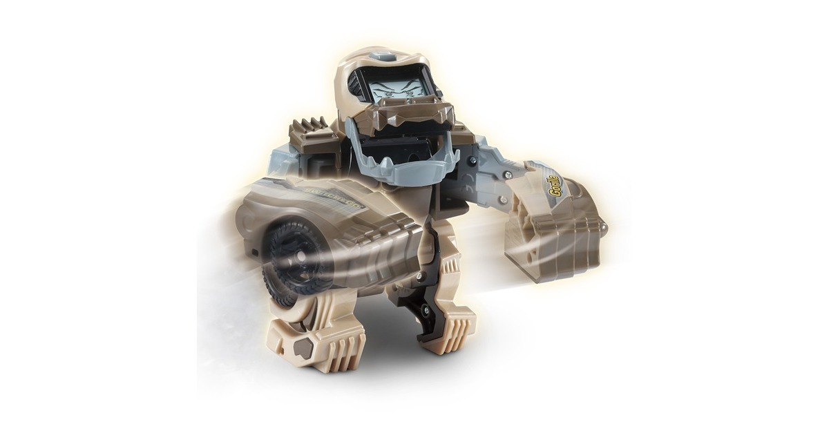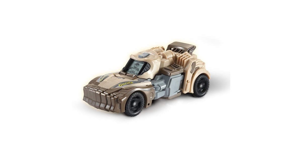 Den starken Gorilla mit wenigen Handgriffen in ein schnelles Auto und wieder zurück verwandeln! Beim Drücken der Taste auf dem Rücken trommelt sich der Gorilla mit seinen Fäusten auf die Brust. Außerdem sind auf dem Bildschirm coole Animationen zu sehen!Art.-Nr.: 1820000