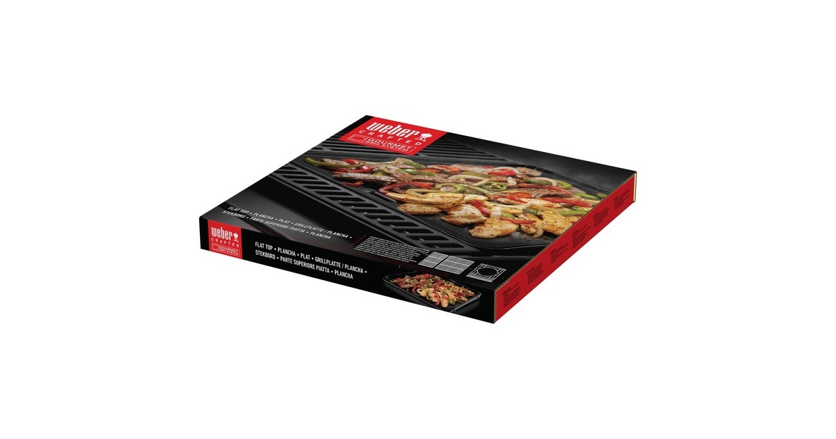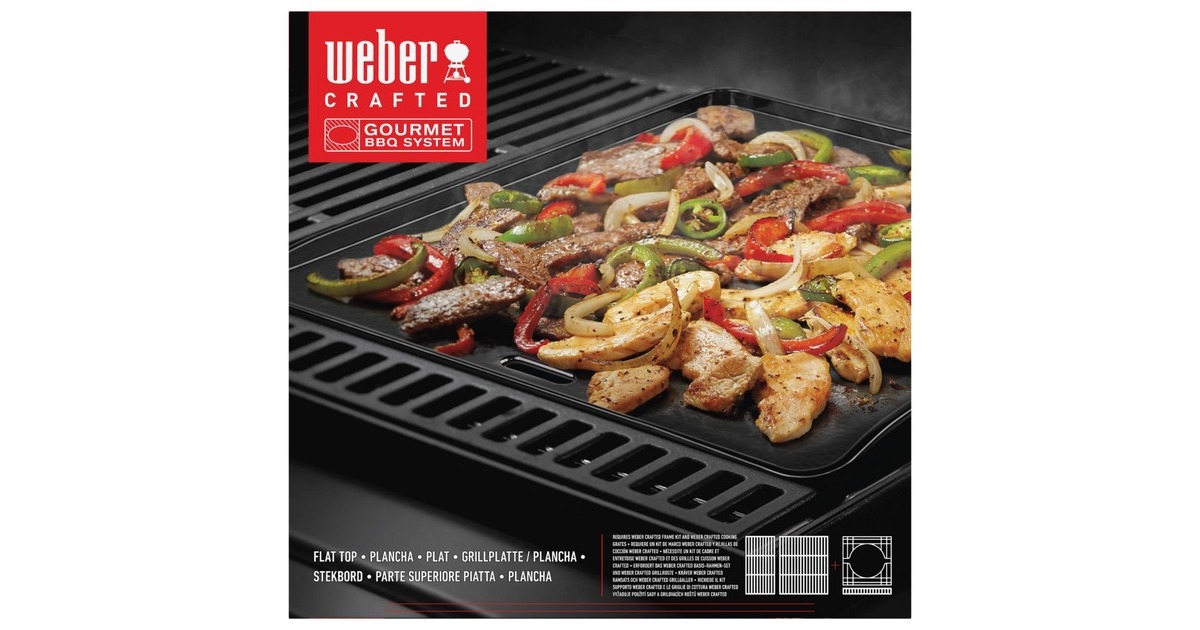 Mit dem WEBER CRAFTED Gourmet BBQ System zaubert man Gerichte, von denen man nie dachte, dass sie auf einem Grill möglich sind. Die WEBER CRAFTED Grillplatte / Plancha 7682 wird in den CRAFTED Basis-Rahmen eingesetzt, und schon kann man auf der großen, ebenen Fläche Pfannkuchen, Bacon, Eier, Fajitas und vieles mehr zubereiten. Der geriffelte Rand hält Öl und Gewürze auf der Plancha, das Gusseisen sorgt für eine bessere Wärmespeicherung, und die porzellanemaillierte Oberfläche erleichtert das Wenden und Anheben der Speisen.Art.-Nr.: 1810919