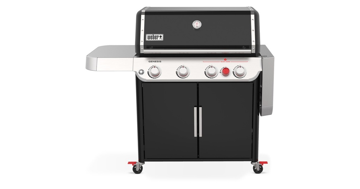 Der komplett neu designte Weber Genesis E-425s verfügt über eine größere und heißere Sear Zone für mehrere Steaks und einen erweiterbaren oberen Grillrost, so dass Hauptgericht und alle Beilagen gleichzeitig gegrillt und serviert werden können. Wenn das Grillgut fertig ist, kann es ganz einfach auf dem großen Vorbereitungs- und Serviertisch abgelegt werden. Auch Deckel und Griff wurden überarbeitet und wirken jetzt kantiger und moderner. Die Bedienfront und die Seitentische wurden vorne leicht abgeschrägt und sind noch besser bedienbar. Mit dem neuen WEBER CRAFTED Gourmet BBQ System kann man alles grillen, was man sich vorstellen kann. Man ersetzt einfach den rechten Grillrost durch das WEBER CRAFTED Basis-Rahmen-Set, setzt das Grillzubehör in den Rahmen und fängt an zu grillen. Das separat erhältliche Grillzubehör lässt sich beliebig austauschen und ist daher unendlich vielseitig. Das Rahmen-Set ist für die Verwendung der CRAFTED Grill-Einsätze erforderlich und wird unter dem rechten Grillrost verstaut, wenn der Grill nicht verwendet wird. Der Genesis E-425s verfügt über vier Haupt- und einen Sear Zone-Brenner, die man alle unabhängig voneinander stufenlos regulieren kann. Um die Temperatur gut im Blick behalten zu können, ist eine Temperaturanzeige in den porzellanemaillierten Deckel integriert. Die Zündung erfolgt praktisch über ein elektronisches Zündsystem. Er bietet außerdem das Pull & Clean Fettauffangsystem mit Fettabstreifer sowie eine neue und verbesserte ausziehbare Fettauffangwanne.Art.-Nr.: 1814493