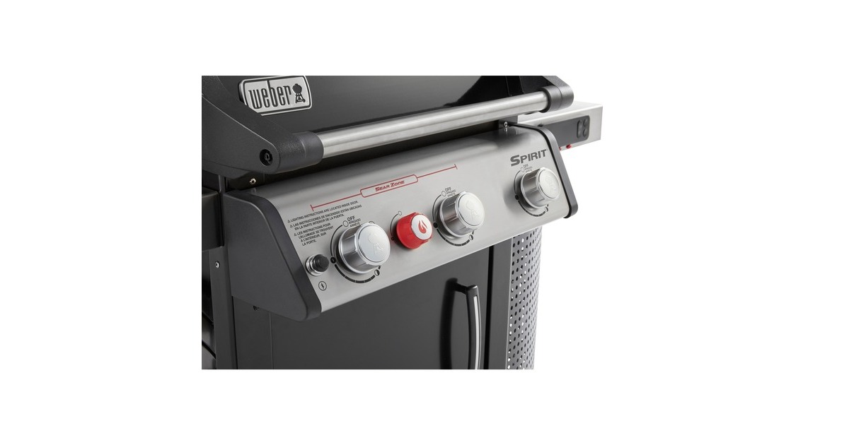 3 metallpolierte Kontrollregler, roter Bedienknopf für die Sear Zone |