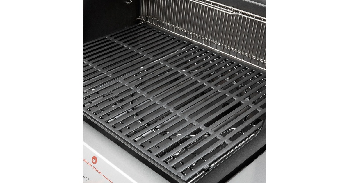 Garraum- und Kerntemperaturen, Benachrichtigungen zum Wenden, Garzeit-Countdown können über das integrierte Display und über die kostenlose App "Weber Connect" angezeigt werden. Erweiterbarer oberer Grillrost schafft eine zweite Grillebene, 2 Anschlüsse für Temperatur-Messfühler |