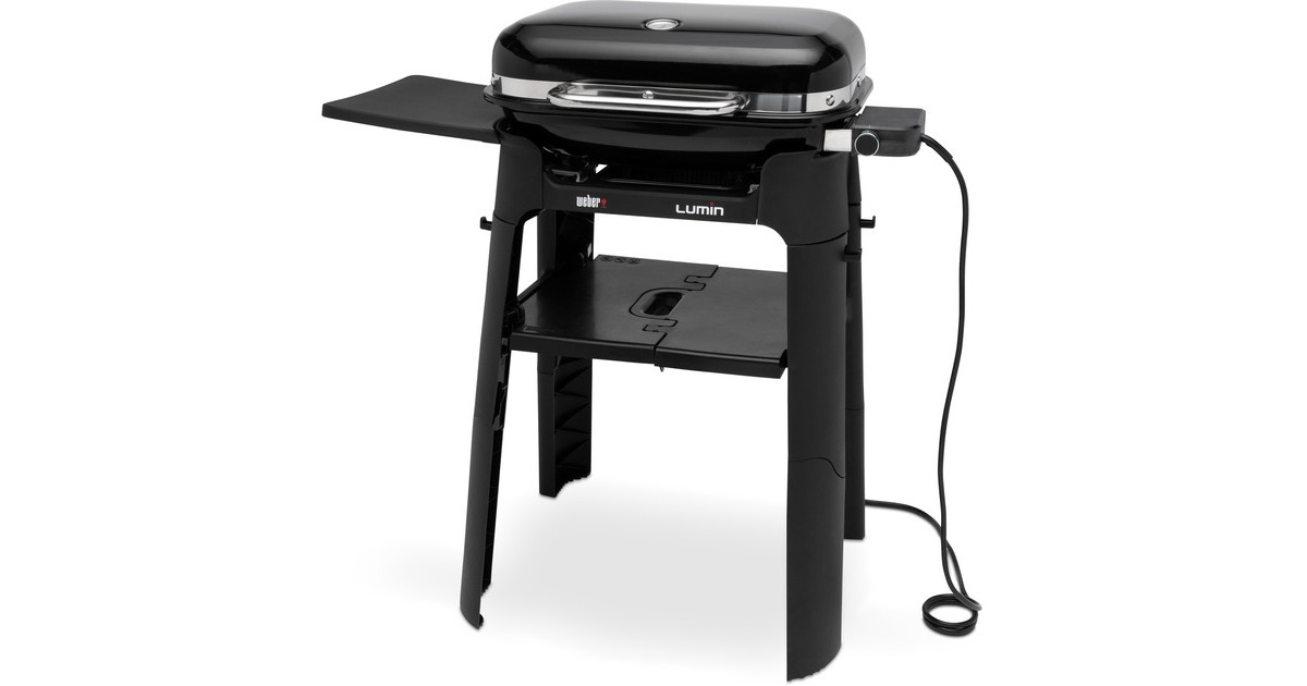 Der Elektrogrill Lumin "Black" von Weber bringt mit hoher Hitze und großer Vielseitigkeit das urbane Grillen im Freien auf ein neues Niveau. Der multifunktionale Elektrogrill erreicht mit 2.200 Watt Temperaturen über 315°C für scharfes Anbraten und köstliche Grillmuster, während die Räucherfunktion den Grillgeschmack weiter verstärkt. Mit den verschiedenen Grilloptionen kann man gefrorenes Grillgut auftauen, Steaks scharf anbraten, Spieße räuchern, Gemüse dämpfen oder Beilagen kochen. Anschließend hält der Lumin die Speisen bis zum Servieren warm und bietet bei geöffnetem Deckel ein Büfett zur Selbstbedienung. Der intuitiv markierte Bedienknopf macht die Auswahl der Grill-, Dampf-, Räucher- und Aufwärmfunktionen kinderleicht. Das emaillierte Stahlgehäuse und die von vorne zugängliche Fettauffangschale lassen sich nach dem Grillen problemlos reinigen. Der moderne, praktische Lumin mit seinem schwarzen porzellanemailliertem Gehäuse ist ein Hingucker auf jedem Balkon oder Terrasse. Mit seinem kompakten, platzsparenden Design ist der Weber Lumin außerdem leicht zu verstauen und für die nächste Grillparty im Handumdrehen wieder aufgestellt. Mit dem Stand mit Seitentisch ist das Grillen mit dem Lumin noch bequemer. Durch das zusammenklappbare Design lässt er sich einfach aufstellen, zusammenklappen und in einem Schrank oder in der Garage aufbewahren. Der Seitentisch bietet zusätzlichen Platz zum Zubereiten und Servieren und dank der vier integrierten Haken ist das Grillwerkzeug immer griffbereit.Art.-Nr.: 1875515