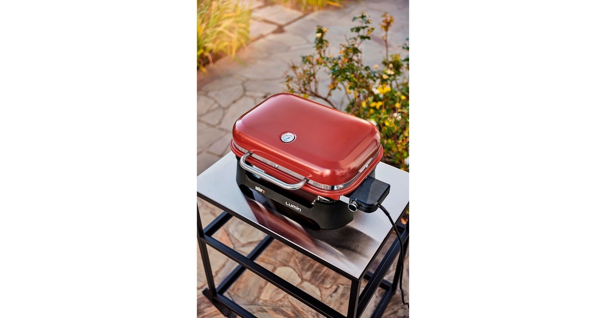 Der Weber Elektrogrill Lumin in der Farbe "Crimson" bringt mit hoher Hitze und großer Vielseitigkeit das urbane Grillen im Freien auf ein neues Niveau. Der multifunktionale Elektrogrill erreicht mit 2.200 Watt Temperaturen über 315°C für scharfes Anbraten und köstliche Grillmuster, während die Räucherfunktion den Grillgeschmack weiter verstärkt. Mit den verschiedenen Grilloptionen kann man gefrorenes Grillgut auftauen, Steaks scharf anbraten, Spieße räuchern, Gemüse dämpfen oder Beilagen kochen. Anschließend hält der Lumin die Speisen bis zum Servieren warm und bietet bei geöffnetem Deckel ein Büfett zur Selbstbedienung. Der intuitiv markierte Bedienknopf macht die Auswahl der Grill-, Dampf-, Räucher- und Aufwärmfunktionen kinderleicht. Das emaillierte Stahlgehäuse und die von vorne zugängliche Fettauffangschale lassen sich nach dem Grillen problemlos reinigen. Der moderne, praktische Lumin mit seinem karminroten porzellanemailliertem Gehäuse ist ein Hingucker auf jedem Balkon oder Terrasse. Mit seinem kompakten und platzsparenden Design ist der Weber Lumin außerdem leicht zu verstauen und für die nächste Grillparty im Handumdrehen wieder aufgestellt.Art.-Nr.: 1875480