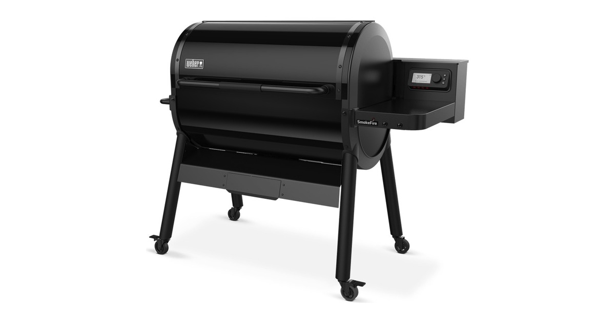 Der innovative Holzpellet-Grill SmokeFire EX6 STEALTH Edition von Weber verbindet den authentischen Grillgeschmack von Holzkohle mit dem Komfort und der Benutzerfreundlichkeit von Gasgrills, ergänzt mit der Präzision und den High-Tech-Funktionen, die sonst nur ein Elektrogrill bietet. Mit dem SmokeFire kann man Steaks scharf anbraten, Briskets räuchern und Brot backen. Die Temperaturbandbreite von 95 - 315°C und die präzise Temperatursteuerung setzen neue Maßstäbe bei Geschmack, Zeit und Grillmöglichkeiten, und machen von Anbraten über Räuchern bis hin zu Backen alles möglich. Mit Weber Connect, dem digitalen Grillassistenten, war es noch nie so einfach das Grillgut genau auf den Punkt zu grillen. Das gut lesbare, witterungsbeständige LCD-Display zeigt die Schritt-für-Schritt-Grillanleitung von Weber Connect sowie Zeit-, Temperatur- und Steuerungsangaben an. Man kann bis zu vier Temperaturfühler anschließen, ein Kerntemperatur-Fühler ist bereits enthalten. Mit dem neuen WEBER CRAFTED Gourmet BBQ System kann man alles grillen, was man sich vorstellen kann. Man ersetzt einfach den rechten Grillrost durch das WEBER CRAFTED Basis-Rahmen-Set, setzt das Grillzubehör in den Rahmen und fängt an zu grillen. Das separat erhältliche Grillzubehör lässt sich beliebig austauschen und ist daher unendlich vielseitig. Das Rahmen-Set ist für die Verwendung der CRAFTED Grill-Einsätze erforderlich und wird unter dem rechten Grillrost verstaut, wenn der Grill nicht verwendet wird. Die bewährten Flavorizer Bars verteilen die Hitze gleichmäßig über den gesamten Grillrost, damit das komplette Grillgut von jeder Seite perfekt gegart wird. Und wenn man dem Grillgut noch etwas mehr von dem beliebten Holzfeueraroma verleihen möchte, braucht man nur den Smoke Boost einschalten, für noch authentischeren Grillgeschmack. Die einzigartige, geneigte Förderschnecke mit variabler Geschwindigkeit gewährleistet eine sichere Holzpelletzufuhr und vermeidet Pelletstaus. Der Trichterbehälter mit seinem großen Fassungsvermögen bietet Platz für einen ganzen 9-Kilo-Sack Holzpellets, damit kann man den ganzen Tag räuchern. Dank des durchdachten Reinigungssystems werden Asche und Fett für eine schnelle und einfache Reinigung anschließend getrennt voneinander in eine geschlossene, leicht herausnehmbare Auffangschale geleitet. Die porzellanemaillierte Oberfläche des SmokeFire EX6 GBS ist witterungsbeständig und sorgt für einen langfristigen Schutz vor Rost und Rissen.Art.-Nr.: 1805701