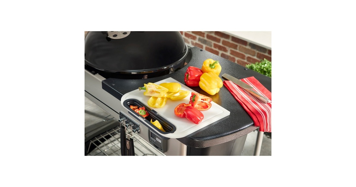 Das Weber Schneidebrett 7032 mit Auffangbehälter passt perfekt auf die Seitentische des Grills oder auf die Arbeitsplatte und bietet eine praktische Zubereitungsfläche zum Burger würzen, Gemüse schneiden oder Steaks für den Grill vorbereiten. Die integrierte Rille dient zum Auffangen von Säften und in den abnehmbaren Auffangbehälter kann man gehackte Zutaten oder Lebensmittelreste legen. Zur Aufbewahrung lässt sich der Auffangbehälter zusammenfalten.Art.-Nr.: 1694228