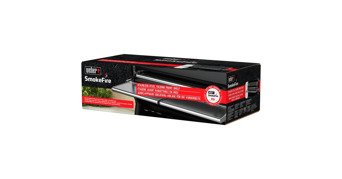 Der SmokeFire EX6 Fronttisch ist passend für den Weber Holzpelletgrill SmokeFire EX6. Er ist mit einer Hand einfach hoch- und runterklappbar. Das Warmhalterost kann an der Unterseite verstaut werden. Der SmokeFire EX6 Fronttisch ist auch passend für die Abdeckhaube 7193.Art.-Nr.: 1694221