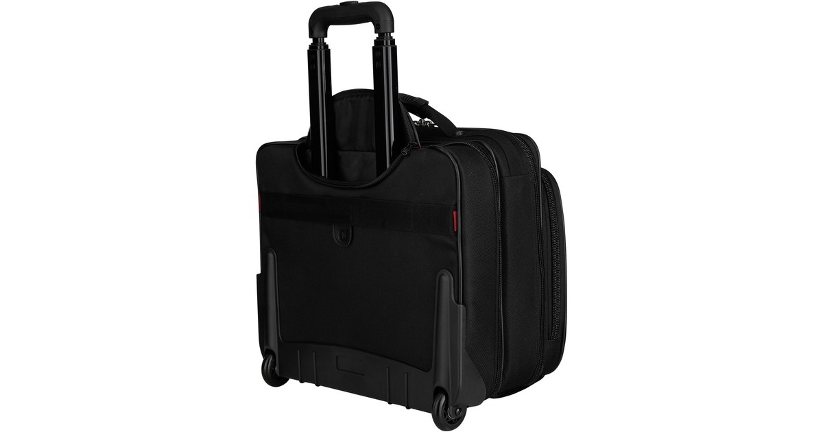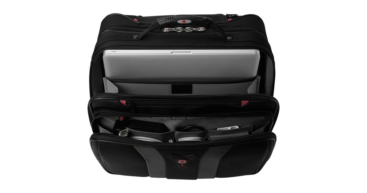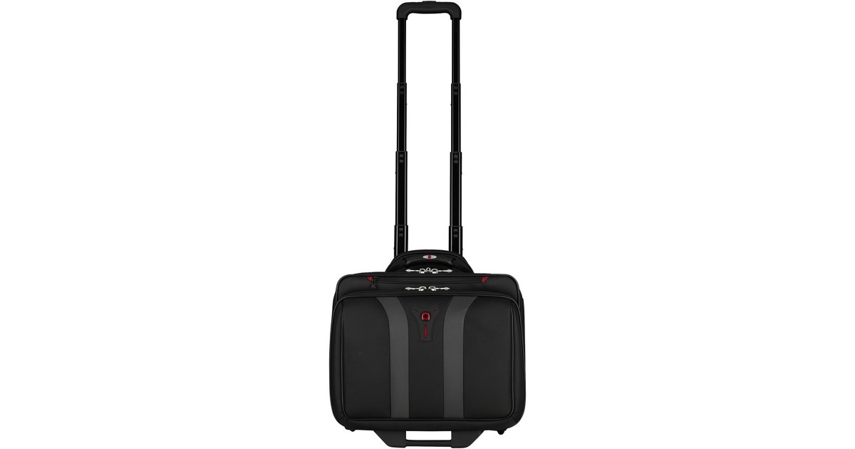 Der schwarze Wenger Granada ist geeignet für Notebooks bis 15,6" (39,62 cm). Der elegante und trendige Trolley besitzt mehrere praktische Zubehörfächer in der Innenseite des Taschendeckels, eine Trennwand in der Mitte und große und leichtlaufende Rollen.Art.-Nr.: 1220927
