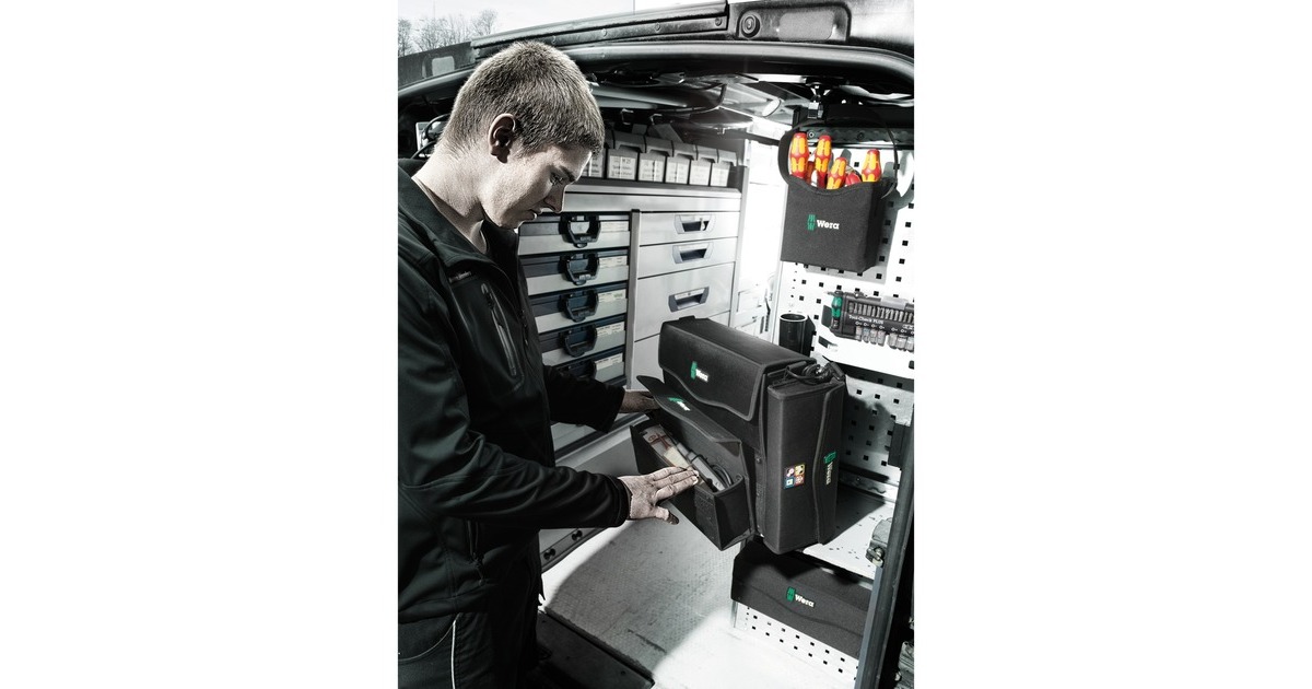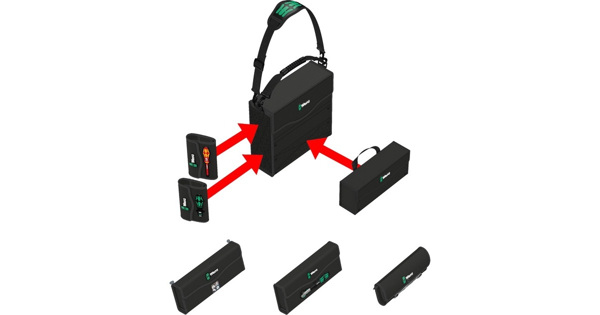 Der Wera 2go 2 Werkzeug-Container ist ein leichter und mobiler Werkzeug-Koffer mit Innen- und Außen-Klettsystem, die ideale Lösung für einen individuellen und bequemen Werkzeugtransport. Weitere Wera Taschen und textile Boxen mit rückseitigem Klett können individuell einfach und sicher an den Werkzeug-Container geklettet werden. Dank des enthaltenen Schulter-Tragegurts mit verschiebbarer breiter Polsterung bleiben die Hände beim Transport frei. Wera 2go 2 sorgt für leichtes Gepäck, denn nur die wirklich benötigten Werkzeuge werden mitgenommen. Im Lieferumfang ist ein Köcher mit individuell einstellbarem Klett-Teiler enthalten, für Schraubendreher und weitere Werkzeuge.Art.-Nr.: 1338897