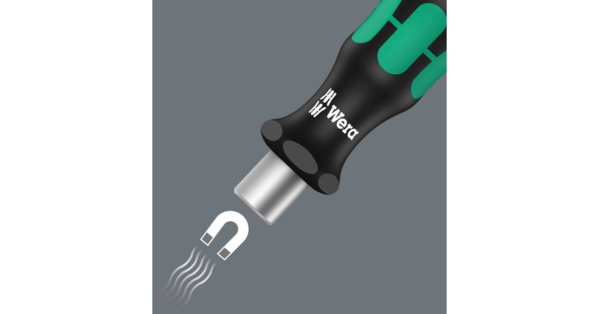 Der Bits-Handhalter 813 von Wera eignet sich für Bits mit 1/4"-Außensechskantantrieb nach DIN ISO 1173-C, 6,3 und Wera Anschluss-Reihe 1. Die 1/4"-Innensechskantaufnahme ist magnetisch und sorgt für sicheren Halt der Bits. Mit dem von Wera entwickelten mehrkomponentigen Kraftform-Griff findet die ganze Hand Kontakt zum Griff. Die glatten, harten Zonen gleiten beim Umgreifen wie Räder durch die Hand und ermöglichen besonders hohe Arbeitsgeschwindigkeiten. Die griffigen, weichen Zonen sind optimale Anlageflächen für die Hand und ermöglichen hohe Kraftübertragung. Der Abrollschutz verhindert unkontrolliertes Wegrollen des Bits-Handhalters 813.Art.-Nr.: 1313468