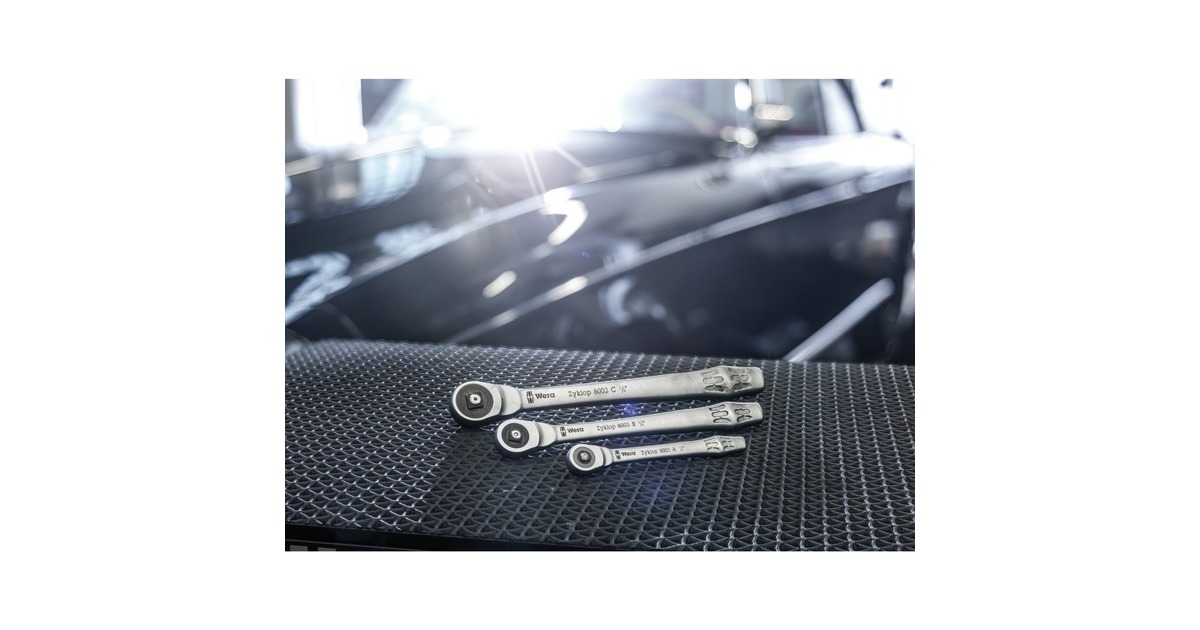 Die Zyklop Metal-Knarre 8003 C von Wera ist eine geschmiedete Vollmetallknarre (Chrom-Molybdän) mit 1/2" Vierkant. Sie bietet besonders hohe Robustheit bei langer Lebensdauer, und die schlanke Bauform ermöglicht Arbeiten auch in sehr engen Bauräumen. Durch die Doppelklinkenkonstruktion wird aus 38 robusten Zähnen eine 76er Feinzahn-Teilung, was einen Rückholwinkel von nur 4,7° ermöglicht. Schrauben erfolgt normalerweise in eine Richtung. Beim Schrauben mit Umschalt-Knarren kann es dabei zum ungewollten Umschalten kommen. Der unverlierbare Durchsteckvierkant mit sicherer Nussfixierung verhindert diesen ungewollten Richtungswechsel.Art.-Nr.: 1268652