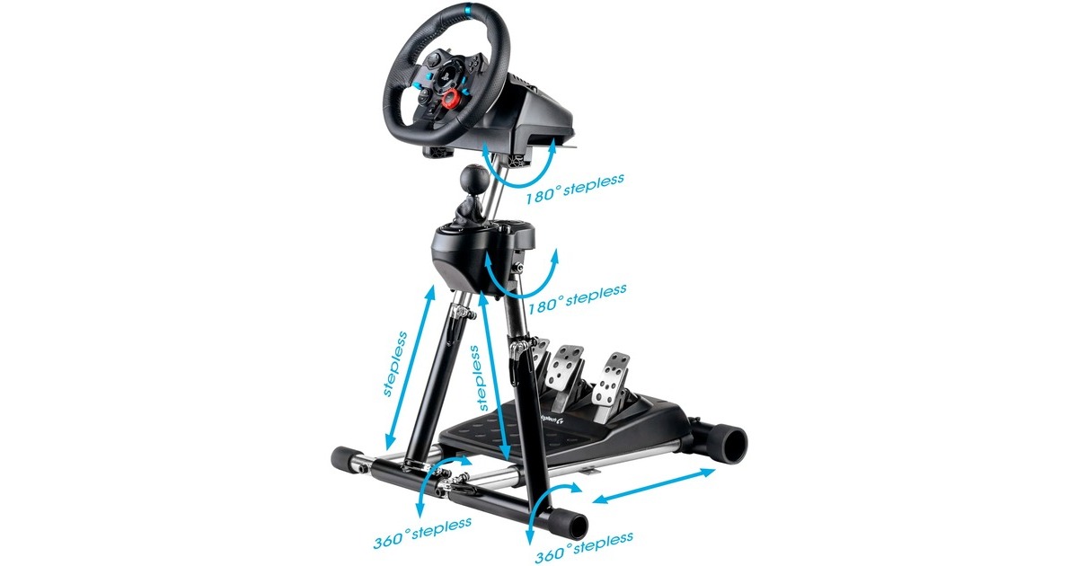 Der Wheel Stand Pro Deluxe V2 eignet sich für das Logitech G29, G920, G25 sowie G25 und G923 Simulatoren-Zubehör und macht es dabei besonders einfach, dieses an die persönlichen Bedürfnisse anzupassen. Die Konstruktion aus stabilem Metall verfügt über Schnelllöse-Mechanismen, mit denen die einzelnen Teile schnell und einfach ausgetauscht oder angebracht werden können. Der Neigungswinkel des Lenksrads ist stufenlos um 360° regulierbar, dabei kann die Schaltung sowohl für Links- als auch Rechtshänder montiert werden. Dank der Anti-Rutsch-Füße ist ein fester Stand sicher gestellt, sodass man sich voll auf das nächste Rennen konzentrieren kann.Art.-Nr.: 100045656