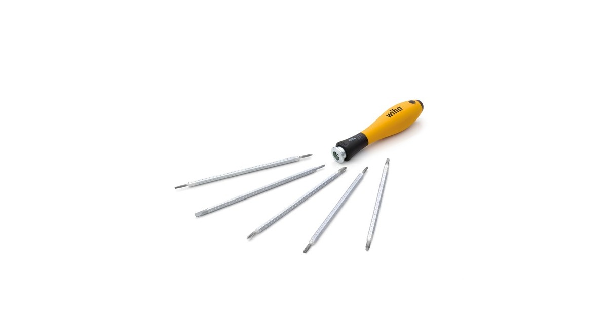Der Bit-Satz SYSTEM 4 ESD 33848 von Wiha enthält ein umfassendes Sortiment an 28mm Micro-Bits mit 4mm-Schaft und den Schraubendrehergriff SoftFinish-telescopic ESD. Die Micro-Bits eignen sich für besonders kleine Schrauben bei elektronischen Komponenten. Der besonders ergonomisch geformte Schraubendrehergriff SoftFinish-telescopic ESD sorgt für einen maximalen Schutz der elektronischen Komponenten. Der elektrostatische Oberflächenwiderstand des ESD Materials liegt bei 10^6 - 10^9 Ohm. So werden Bauteile vor elektrostatischer Energie und damit verbundenen Schäden sicher geschützt. Er hat einen ergonomischen Mehrkomponentengriff mit Abrollschutz, eine 4mm-Sechskantaufnahme für alle SYSTEM 4 Klingen und ermöglicht variable Kombiklingenlängen-Einstellungen von 18 - 90mm. Die ClickStop-Kugelklemmung sorgt für sicheren Halt der Klingen und schnellen Wechsel. Der Bit-Satz SYSTEM 4 ESD ist in einer robusten Box mit Schaumstoffeinlage untergebracht.Art.-Nr.: 1739420