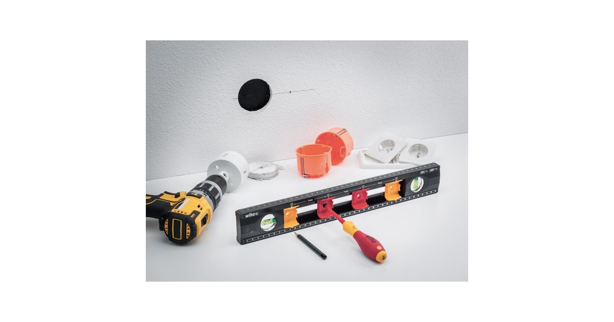 Die Elektriker Wasserwaage 42074 von Wiha ermöglicht selbst bei spitzem Blickwinkel eine perfekte Einsicht auf die beiden Libellen. Außerdem ermöglicht die Wasserwaage dank des durchgehenden Gehäuses ein unterbrechungsfreies Anzeichnen von Linien. Selbst bei Draufsicht wird mithilfe der raffiniert positionierten Skalen eine komfortable Bemaßung ermöglicht. Einen weiteren Vorteil bei der Elektroinstallation bieten die variablen Abstandsmarkierungen für bis zu vier Unterputzdosen. Dank der verschiebbaren Markierpunkte für Dosen kann die Elektriker Wasserwaage je nach Ländervorgabe an die jeweiligen Markierungsabstände angepasst und somit auch international eingesetzt werden. Mit ihrer kompakten Form ist die Wasserwaage außerdem perfekt für den mobilen Einsatz geeignet und passt bequem in einen Wiha Elektrikerkoffer.Art.-Nr.: 1738244