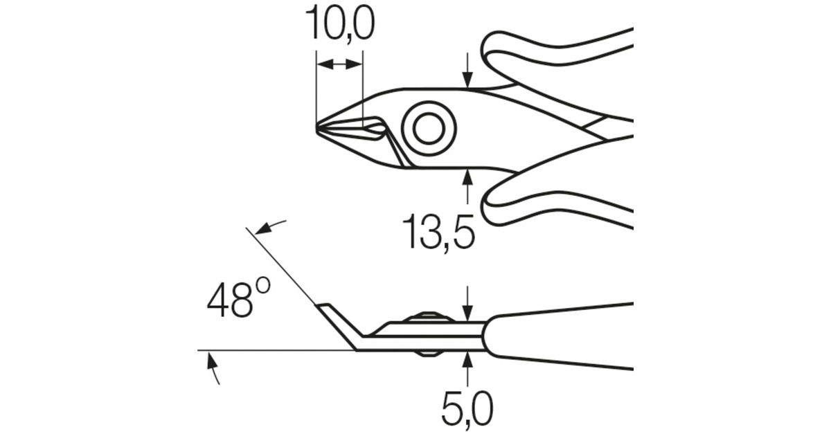 Der Seitenschneider Electronic 26833 von Wiha hat einen breiten, spitzen Kopf ohne Wate für absolut bündiges Schneiden von weichen Drähten in der Elektronik. Der kompakte Seitenschneider mit Öffnungsfeder eignet sich zum Schneiden weicher Drähte bis Ø 1,3mm. Er ist aus C 70 Sonder-Werkzeugstahl gefertigt, die Klinge ist um 48° abgewinkelt, zum Schneiden schräg von oben oder von der Seite.Art.-Nr.: 1739263