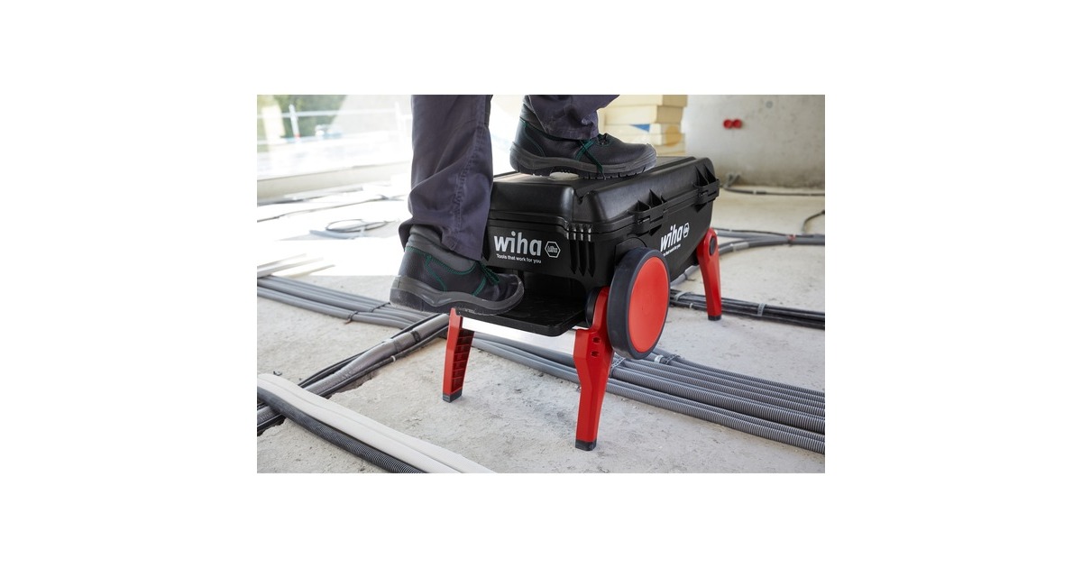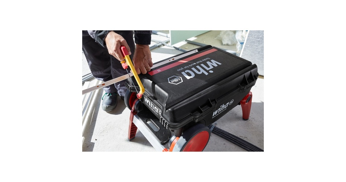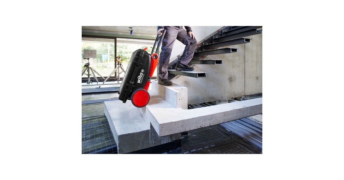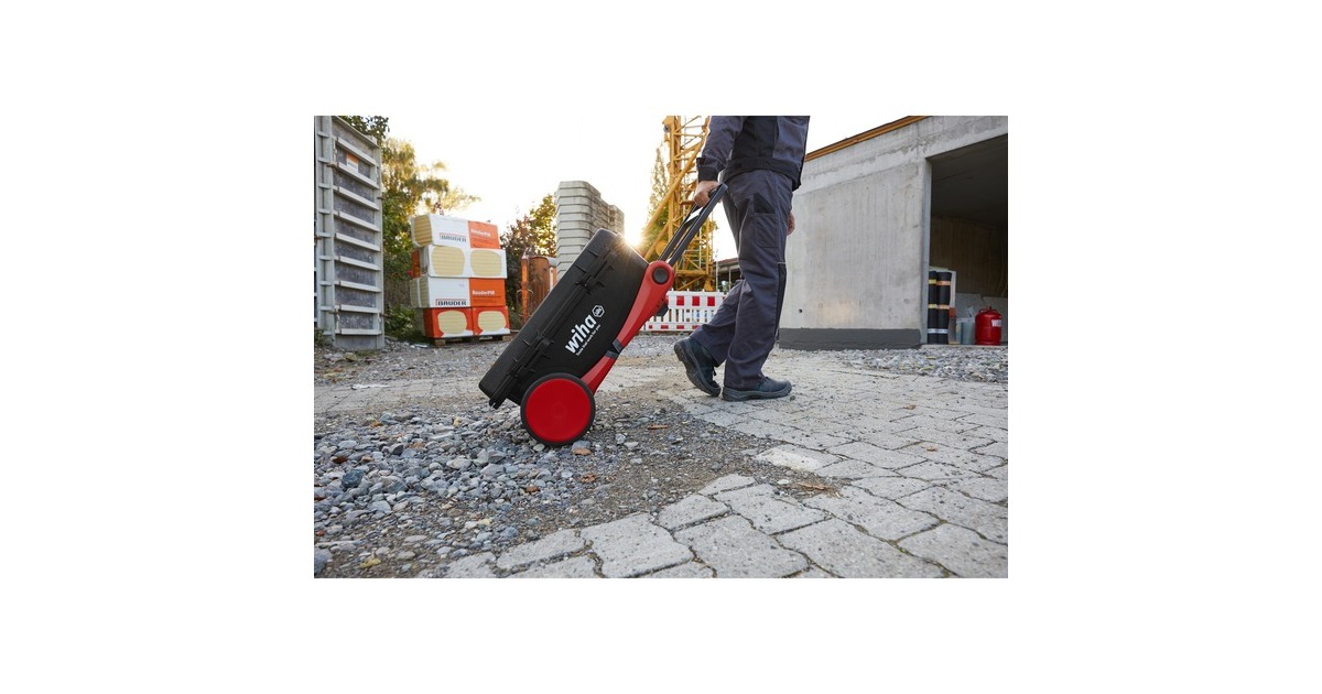 Der Werkzeugkoffer XXL III Elektrik von Wiha begeistert mit einem umfangreichen Werkzeugsortiment für Elektriker, genügend Stauraum und absoluter Robustheit. Dank der extra großen Räder lässt sich der Koffer auf unwegsamen Gelände oder über Treppen bequem hinter sich herziehen. Mit den ausklappbaren Beinen dient der Koffer auch als rutschsicherer Tritt. Die praktische Trittstufe ermöglicht ein sicheres Aufsteigen auf den Koffer. Außerdem ist durch die erhöhte Position des Koffers eine komfortable, rückenschonende Entnahme der Werkzeuge möglich. Die V-förmige Kerbung mit Skala im Kofferdeckel erleichtert das Absägen von z.B. Kabelkanälen oder Leisten auf der Baustelle. Der Werkzeugkoffer als mobile Werkbank mit Mess- und Sägehilfe macht den Zollstock überflüssig. Durch die umfangreiche Ausstattung des XXL III Elektrik hat man für jede Anwendung das passende Werkzeug immer griffbereit. Ergonomische Schraubendreher, innovative Zangenlösungen, das mobile Schraubendreher- und Bit-Set slimVario und viele weitere Werkzeuge erleichtern den Arbeitsalltag spürbar. Dabei schützen die vollisolierten Werkzeuge den Anwender bei Arbeiten an spannungsführenden Teilen. Der aus robustem Polypropylen gefertigte Koffer ist zusätzlich mit Gasdruckdämpfern ausgestattet, die den Deckel in verschiedenen Positionen halten und Quetschungen an den Fingern durch versehentliches Zufallen des Deckels verhindern. Im Deckel und im ausziehbaren Zuggriff befinden sich Fixierpunkte für magnetische Arbeitsleuchten.Art.-Nr.: 1659631| Abmessungen | Breite: 68,3 cm x Höhe: 49,6 cm x Tiefe/Länge: 33,5 cm |
