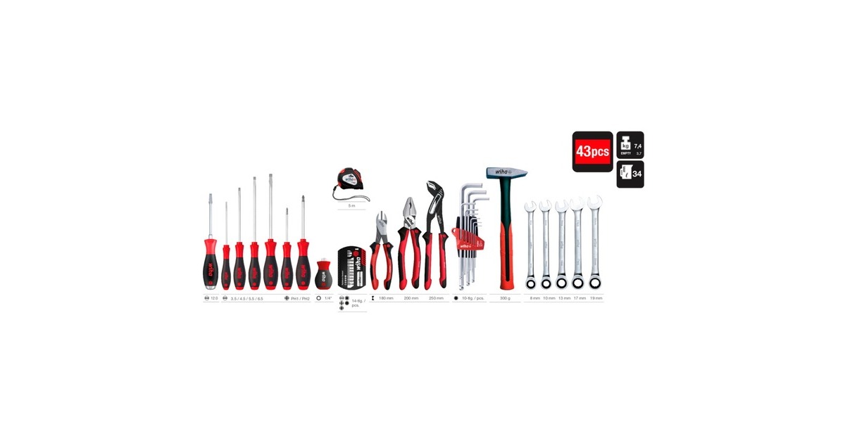Bits, Hammer, Maß, Schraubendreher, Schraubenschlüssel, Zange |