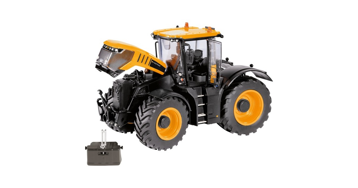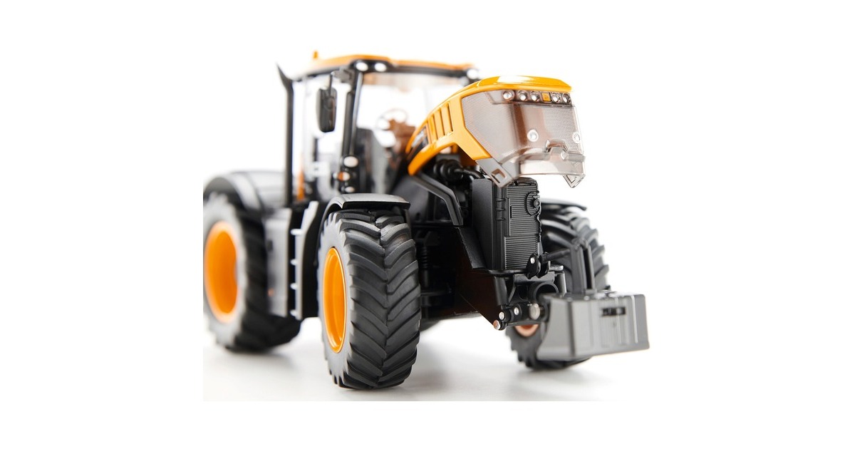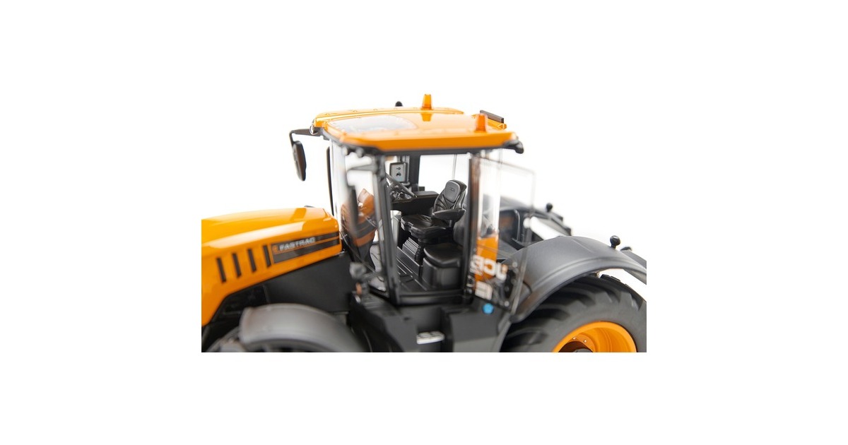 Dieses Modell eines JCB Fastrac 8330 aus dem Hause Wiking überzeugt durch hohe Präzision, Detailgenauigkeit und tolle Funktionen. So verfügt der Schlepper über wechselbare Räder mit magnetischen Abdeckungen (inkl. Werkzeug zum Radwechsel), eine Motorhaube zum Öffnen, ein abnehmbares Frontgewicht und bewegliche Ober- und Unterlenker. Hinzu kommen die originalgetreue Bedruckung von kleinsten Details, eine detailgetreue Kabine mit Instrumenten, filigran eingesetzte Leuchten und klappbare Außenspiegel - insgesamt wurden mehr als 90 Einzelteile in diesem Modell verbaut. Das Modell ist mit anderen Wiking-Modellen mit Maßstab 1:32 kombinierbar.Art.-Nr.: 1902502