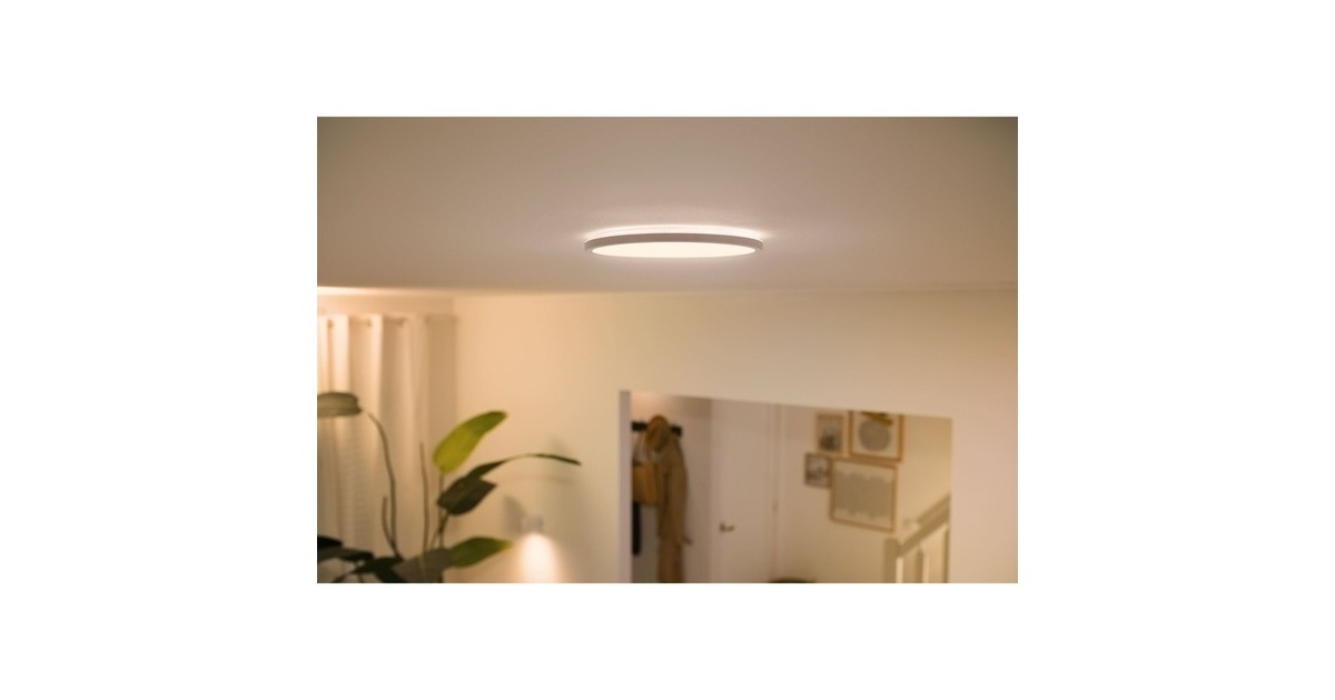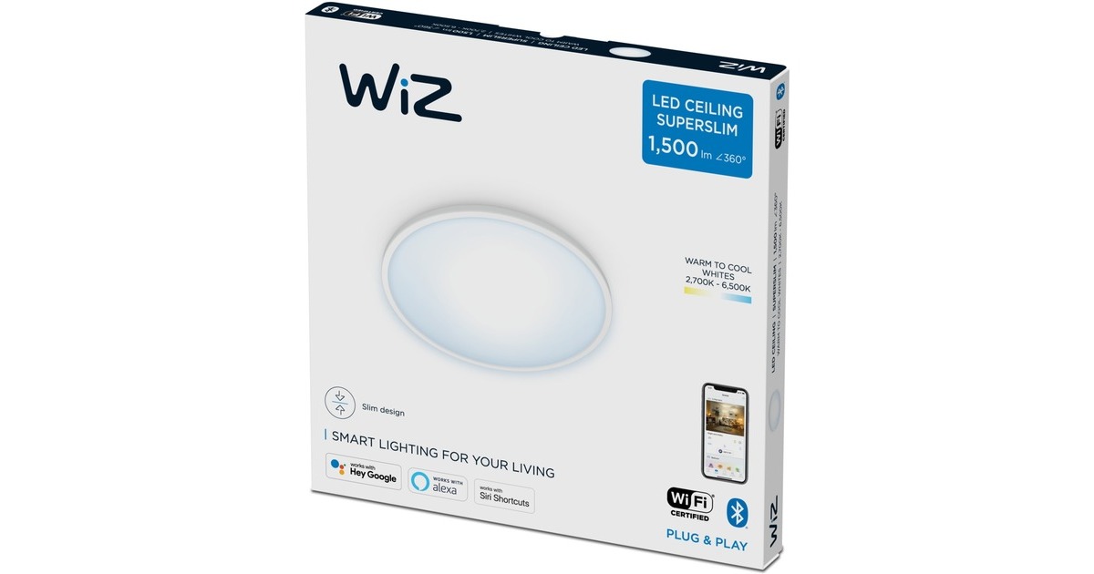 Der Superslim Deckenleuchte 22W von WiZ ist eine schlanke Leuchte mit einer Lichtleistung von bis zu 1600 Lumen. Sie erzeugt ein weißes dimmbares Licht, dessen Farbtemperatur sich von warmweiß bis kaltweiß steuern lässt. Die Steuerung erfolgt über die WiZ-App, wobei nur eine Verbindung zum WLAN und kein zusätzlicher Gateway notwendig ist. Dabei lassen sich eigene Routinen erstellen und benutzerdefinierte Szenen einstellen. Darüber hinaus ist diese Leuchte kompatibel mit verschiedenen Sprachassistenzsystemen.Art.-Nr.: 1848110