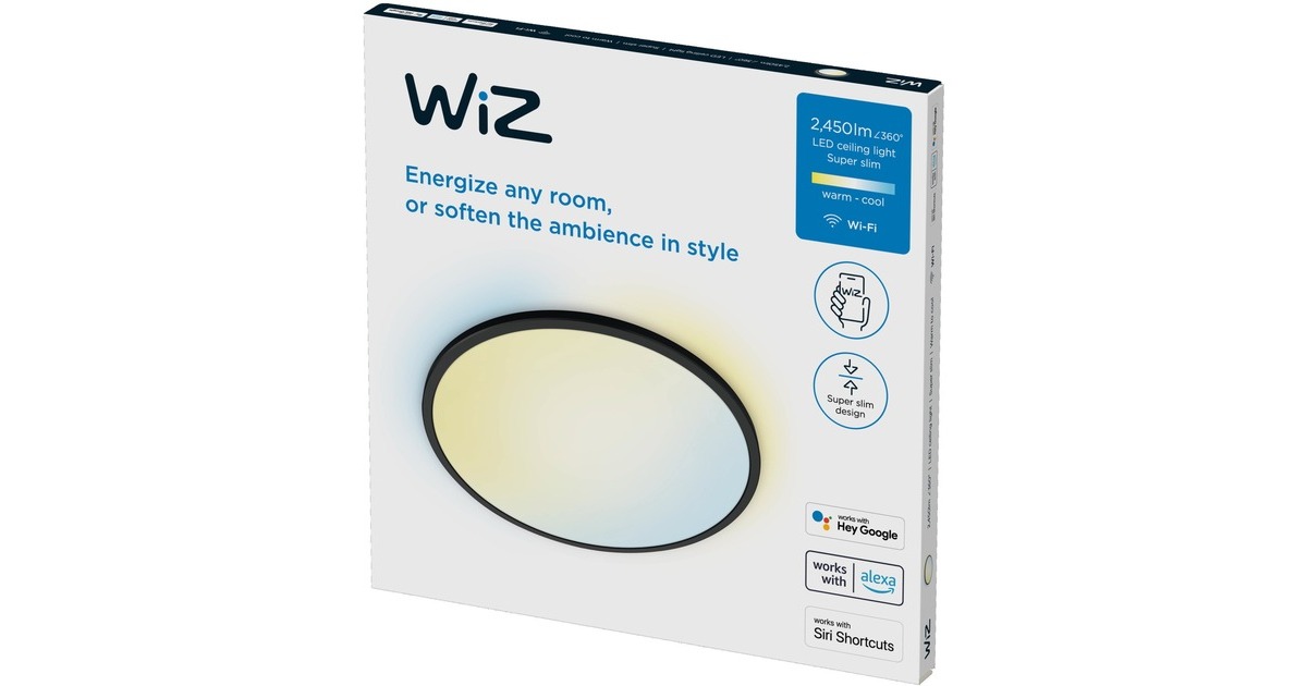 Der Superslim Deckenleuchte 22W von WiZ ist eine schlanke Leuchte mit einer Lichtleistung von bis zu 2450 Lumen. Sie erzeugt ein weißes dimmbares Licht, dessen Farbtemperatur sich von warmweiß bis kaltweiß steuern lässt. Die Steuerung erfolgt über die WiZ-App, wobei nur eine Verbindung zum WLAN und kein zusätzlicher Gateway notwendig ist. Dabei lassen sich eigene Routinen erstellen und benutzerdefinierte Szenen einstellen. Darüber hinaus ist diese Leuchte kompatibel mit verschiedenen Sprachassistenzsystemen.Art.-Nr.: 1855726
