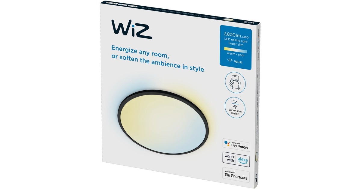 Der Superslim Deckenleuchte 32W von WiZ ist eine schlanke Leuchte mit einer Lichtleistung von bis zu 3800 Lumen. Sie erzeugt ein weißes dimmbares Licht, dessen Farbtemperatur sich von warmweiß bis kaltweiß steuern lässt. Die Steuerung erfolgt über die WiZ-App, wobei nur eine Verbindung zum WLAN und kein zusätzlicher Gateway notwendig ist. Dabei lassen sich eigene Routinen erstellen und benutzerdefinierte Szenen einstellen. Darüber hinaus ist diese Leuchte kompatibel mit verschiedenen Sprachassistenzsystemen.Art.-Nr.: 1855729