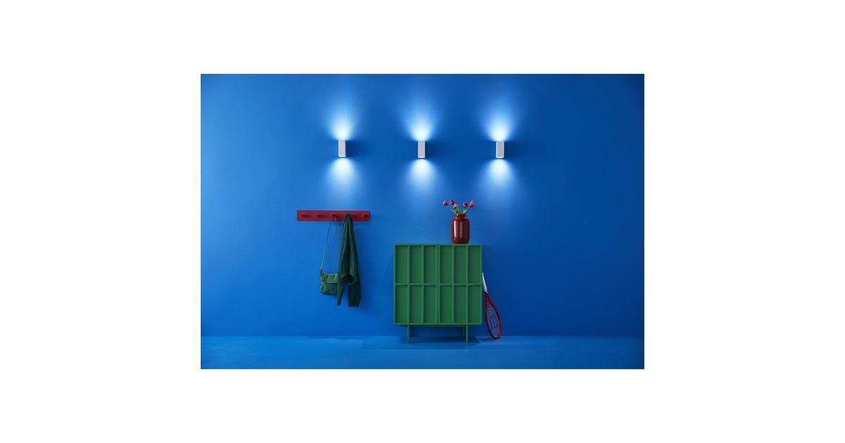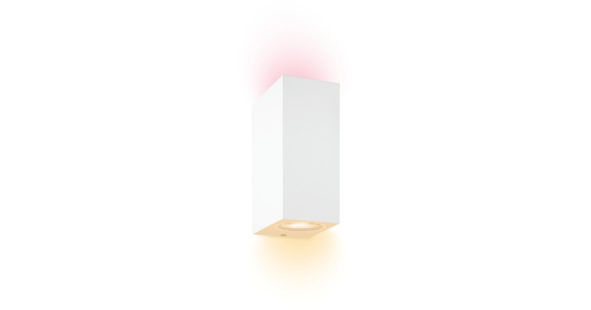 Die Up & Down Wandleuchte bringt warmweißes bis kaltweißes und bei Bedarf farbiges Licht an die Wände des eigenen Zuhauses. Durch den stilvollen Leuchtenkörper mit Öffnungen oben und unten erzeugt sie ein effektvolles Akzentlicht. Diese LED-Leuchte für Innenräume lässt sich dabei per WLAN steuern - ein zusätzlicher Gateway ist nicht notwendig. Es sind zwei LED-Lampen integriert - die Lichtleistung der gesamten Leuchte liegt bei 690 Lumen. Art.-Nr.: 1856373