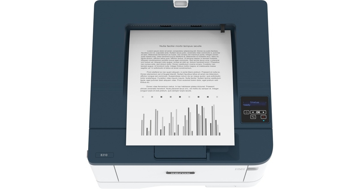 Mit dem Xerox B310 drucken kleine Arbeitsgruppen schnell und zuverlässig. Dieser Schwarzweiß-Laserdrucker erreicht eine Geschwindigkeit von bis zu 40 Seiten pro Minute, verfügt über eine 250 Blatt fassende Papierkassette, eine Zusatzzufuhr mit bis zu 100 Blatt Kapazität und ist neben einer LAN-Schnittstelle auch über WLAN ansprechbar. Damit wird auch der unkomplizierte Direktdruck von Mobilgeräten wie Smartphones oder Tablets möglich. Art.-Nr.: 1770163