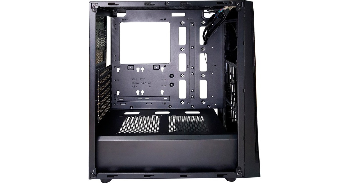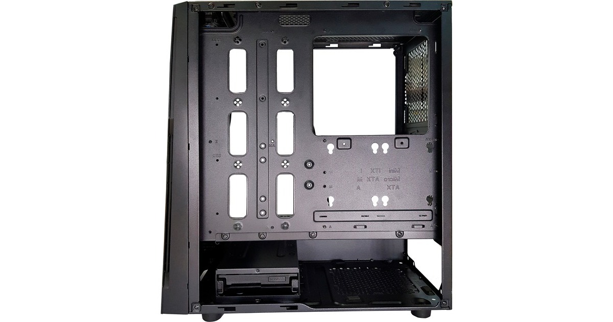 Material Chassis: Stahl (SGCC), schwarz pulverbeschichtet, Front Panel: ABS-Plastik, Seitenteil: Tempered Glass |