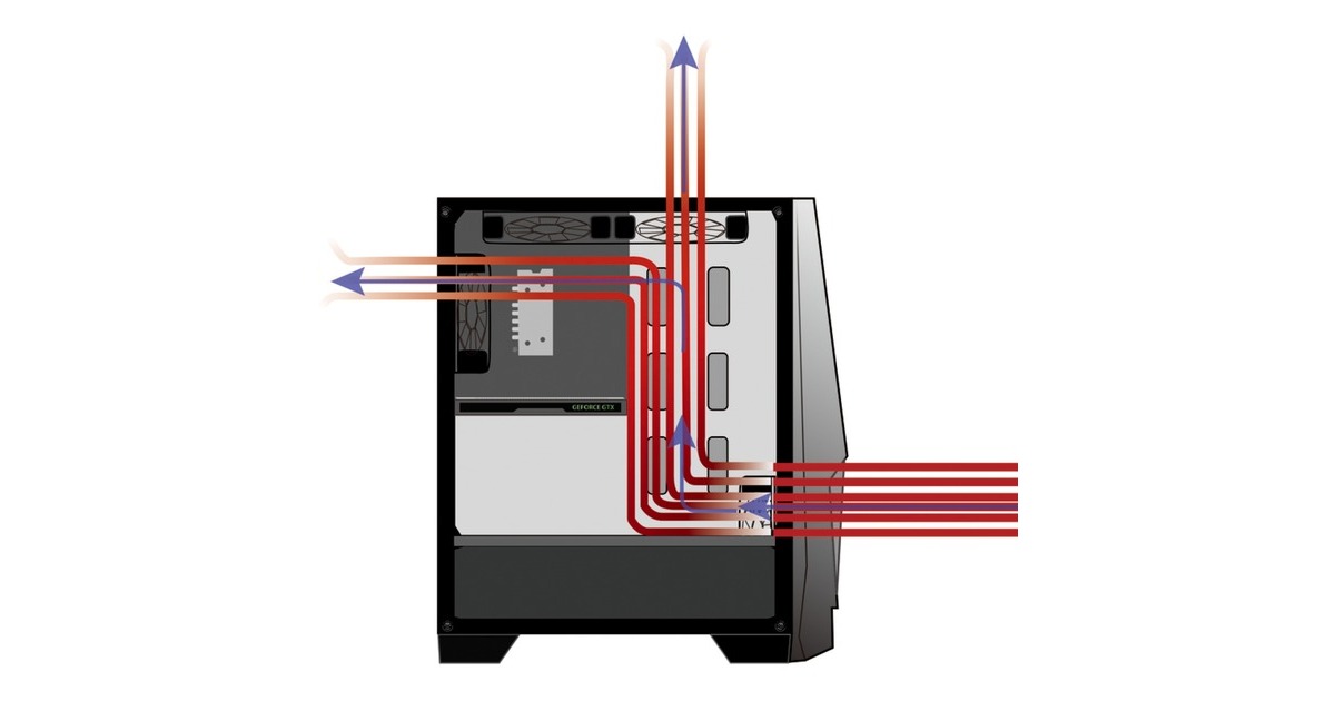 1x 120-mm-ARGB-Lüfter vorhanden, zwei weitere 120-mm-Lüfter einbaubar, alternativ 2x 140-mm-Lüfter einbaubar |