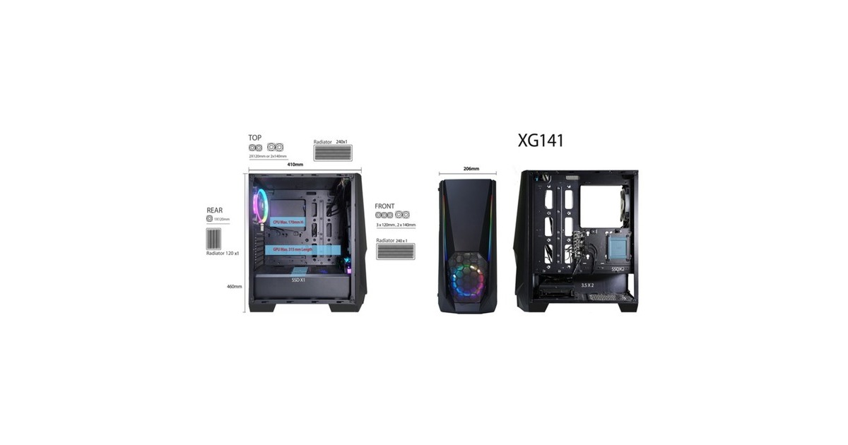Das Xilent Blast aus der Gaming Serie ist das ideale Computer Case für ein spannendes Gaming Erlebnis. Durch seine Konstruktion und der unterstützenden 2 ARGB PWM Fans wird ein gleitender Airflow sichergestellt, der entscheidend dazu beiträgt, die Komponenten in hitzigen Gaming-Sessions zu kühlen. Das Case wurde so designed, dass in kürzester Zeit ein PC-Build problemlos gebaut werden kann. Durch das im Xilent Blast integrierte Kontrollboard wird die adressierbare RGB-LED Steuerung und die Lüftersteuerung der angeschlossenen Gehäuselüfter synchronisiert und gesteuert. Das Board verfügt über sechs male 3-PIN (5V) ARGB Anschlüsse und über sechs mini 3-PIN DC (12V) Lüfter Anschlüsse. Die verschiedenen Farbmodi können ganz einfach über den LED Knopf am PC gewechselt werden.Art.-Nr.: 1872996