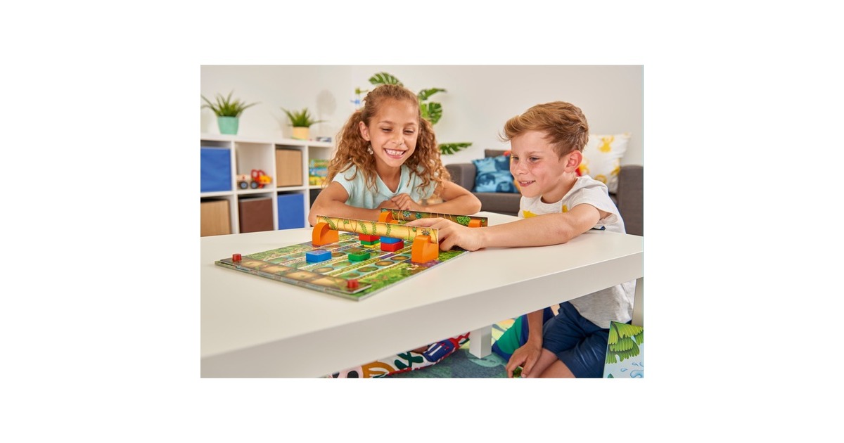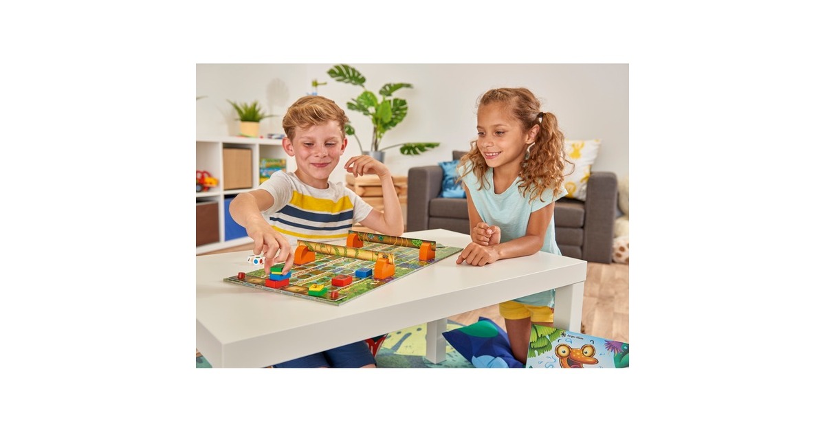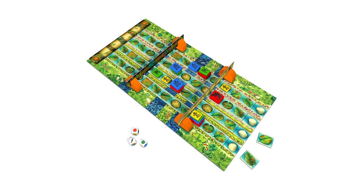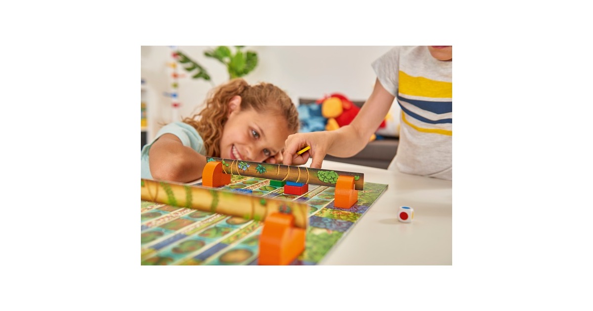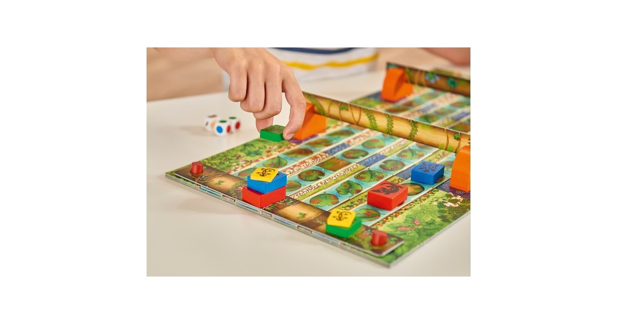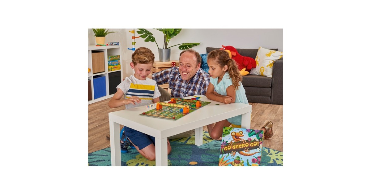 Wasser marsch zum großen Wettschwimmen! Drunter und drüber geht es, wenn sich große und kleine Tiere auf allerlei Treibgut in der Strömung tummeln. Jede Schwimmriege besteht aus einem großen Krokodil, einer Schildkröte, einem Frosch und einem kleinen Gecko. Winzlinge können sich auf dem Rücken der kräftigeren Tiere mitnehmen lassen. Aber nur wer beiden Brücken unterwegs mit eingezogenem Kopf ausweicht, geht dabei nicht baden. Bademeister wird, wer seine vier Tiere als Erster bis zum Baumstamm gebracht hat. Go Gecko Go ist ein Kinderspiel, das mit viel Spaß ein gutes Gespür für Höhenunterschiede vermittelt.Art.-Nr.: 1558333