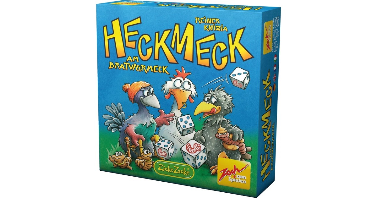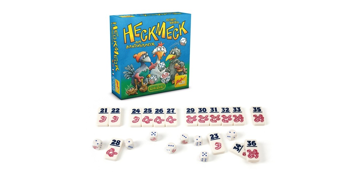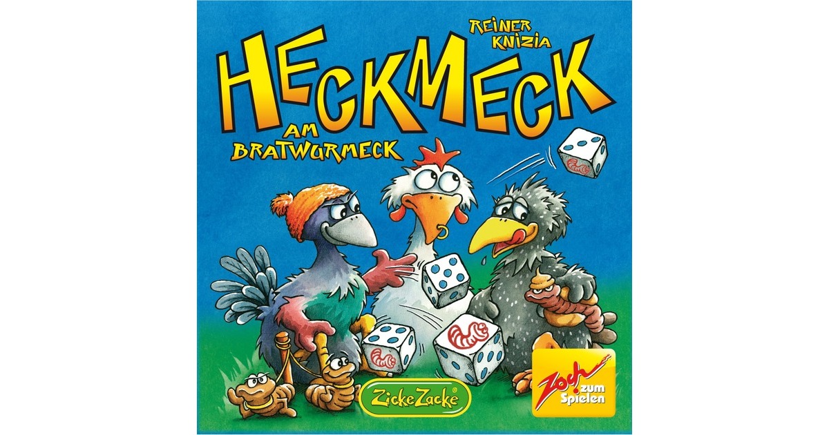 Heckmeck am Bratwurmeck von Zoch ist ein kultiges Würfelspiel. In der Spielmitte warten auf dem Grill, 16 unterschiedlich wertvolle Portionen Bratwürmer darauf, von den würfelnden Hühnern ergattert zu werden. Dazu pickt ein Spieler identische Würfelsymbole aus seinem Wurf heraus und würfelt mit den verbliebenen Würfeln weiter. Erreichen seine Würfel den Wert einer ausliegenden Bratwurmportion, kann er diese nehmen und das sogar von den Vorräten seiner Mithühner.Art.-Nr.: 1195396