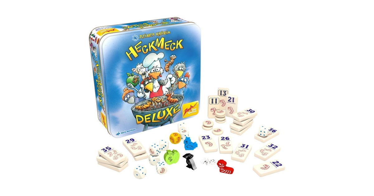 Den Klassiker Heckmeck am Bratwurmeck und die Erweiterung Extrawurm gibt es jetzt zusammen in der edlen Metallbox. Als Bonus oben drauf erfreut ein Bratapfel seinen Besitzer am Spielende. Tolle Ausstattung und ein hervorragendes Preis-Leistungsverhältnis machen Heckmeck Deluxe zum Flaggschiff der Heckmeck-Spielefamilie. Art.-Nr.: 1493540