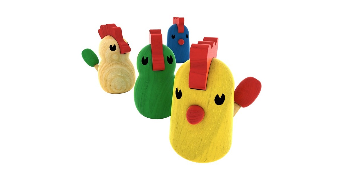 24 eierförmige Wegplättchen, 12 achteckige Hühnerhofplättchen,4 Hühner aus Holz,4 Schwanzfedern aus Holz,1 Spielanleitung |